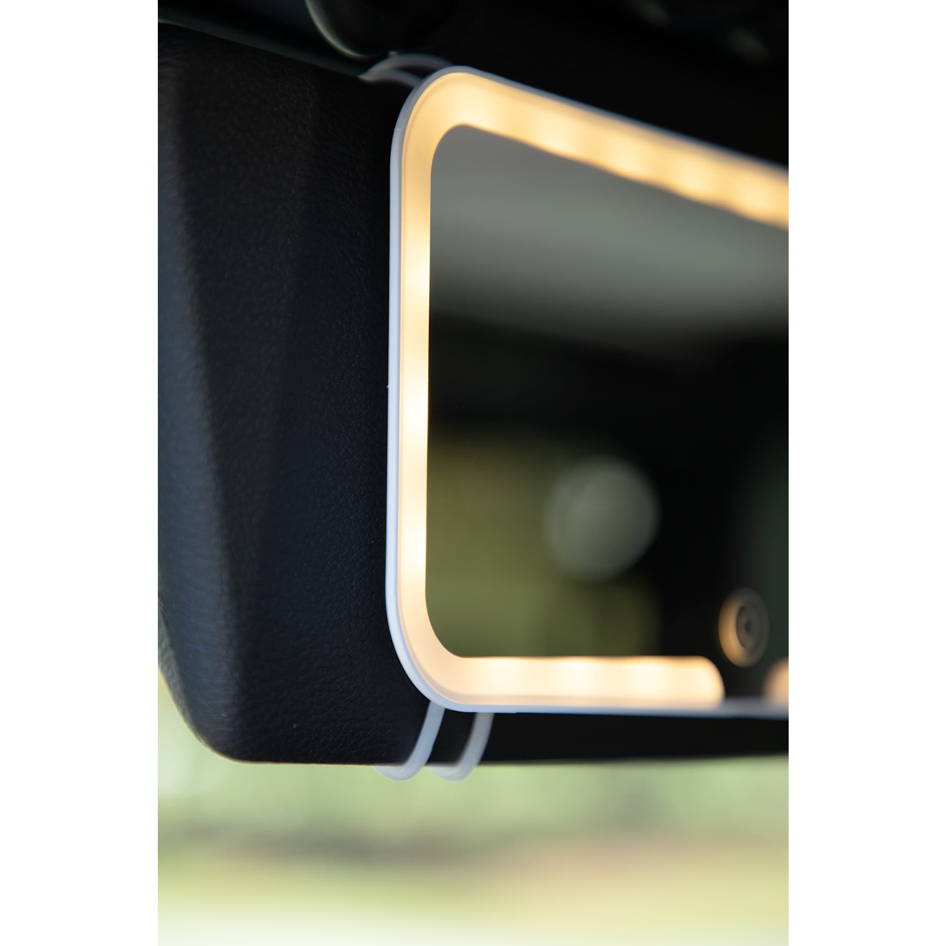 Upgrade your on-the-go routine with the Car Visor Lighted Mirror, designed for quick touch-ups and grooming wherever the road takes you. Measuring 8.7" x 3.9", this sleek, rectangular mirror offers a wide, clear view—perfect for makeup application, hair checks, or quick grooming while traveling. The adjustable silicone straps securely fasten the mirror to most standard visors without slipping or damaging the surface. Built-in LED lighting provides bright, even illumination that works in both daytime and low-light conditions, helping you look your best anytime, anywhere.
