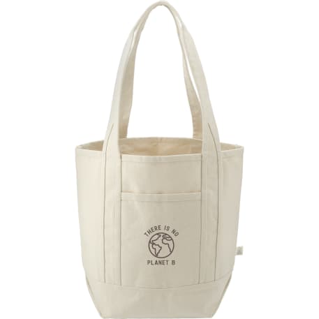 The Organic Cotton Tote is made from GOTS OE Cotton. This sustainable take on a classic style features a front slash pocket and double 12.5" drop handles. Through a partnership with 1% For The Planet, one percent of sales of all EcoSmart® products will be donated to nonprofits dedicated to protecting the planet.