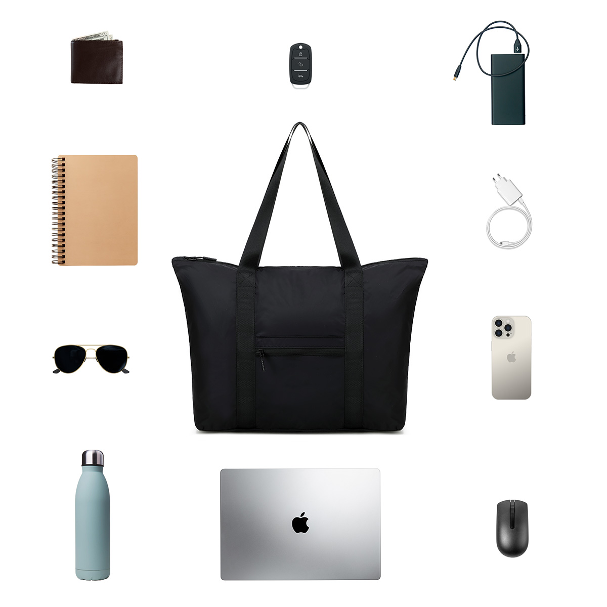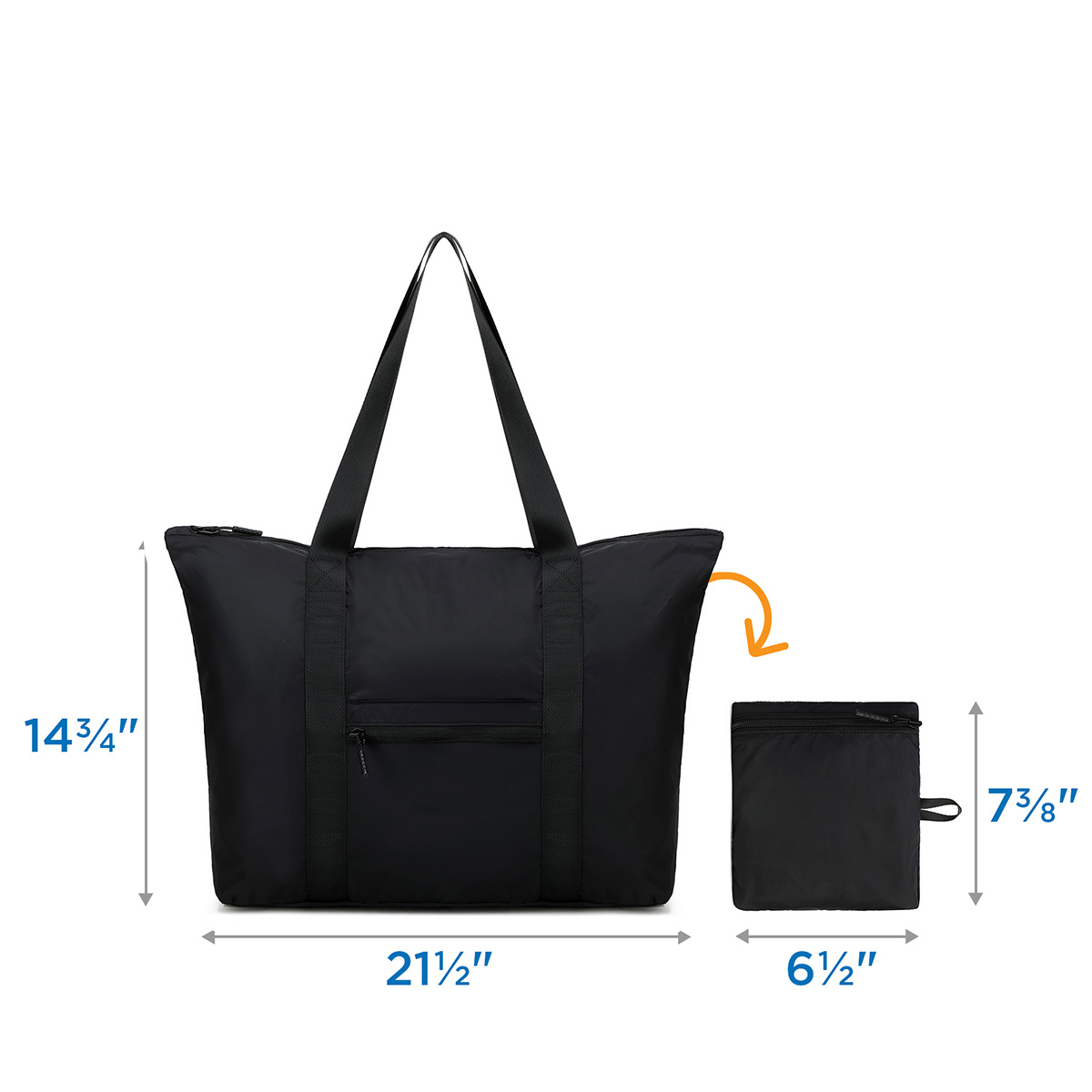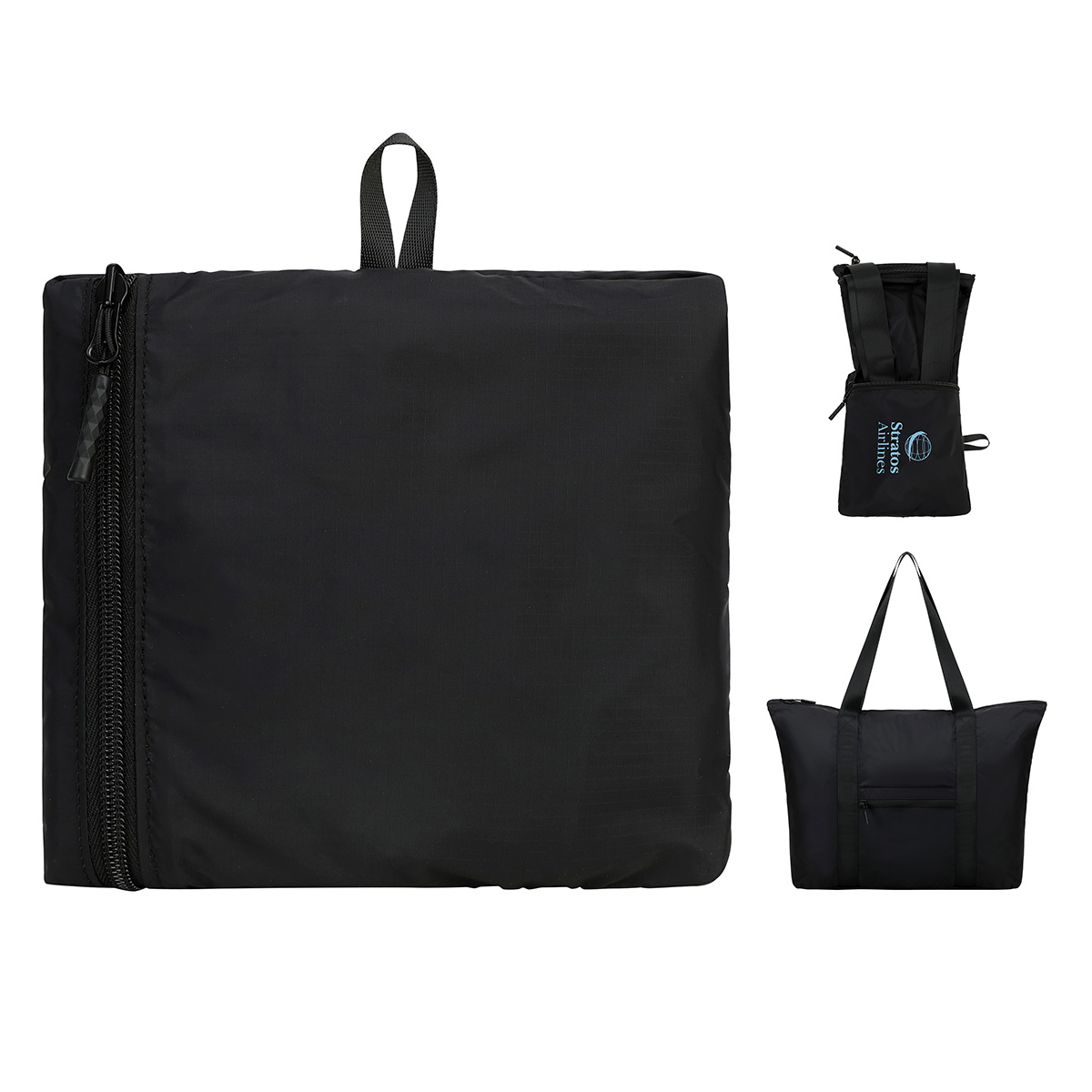 Our large capacity AeroLOFT® Everyday Foldable Tote is an essential. Perfect for travel, shopping, the gym or beach! Features our durable, extra lightweight, water repellent AeroLOFT® fabric with ripstop nylon construction for added strength. Large, zippered main compartment flexes to accommodate extra clothes, towels, outerwear and more. Heavy duty, hands-free shoulder strap is reinforced for extra strength. Exterior zippered front pocket functions as folding compartment when not in use.