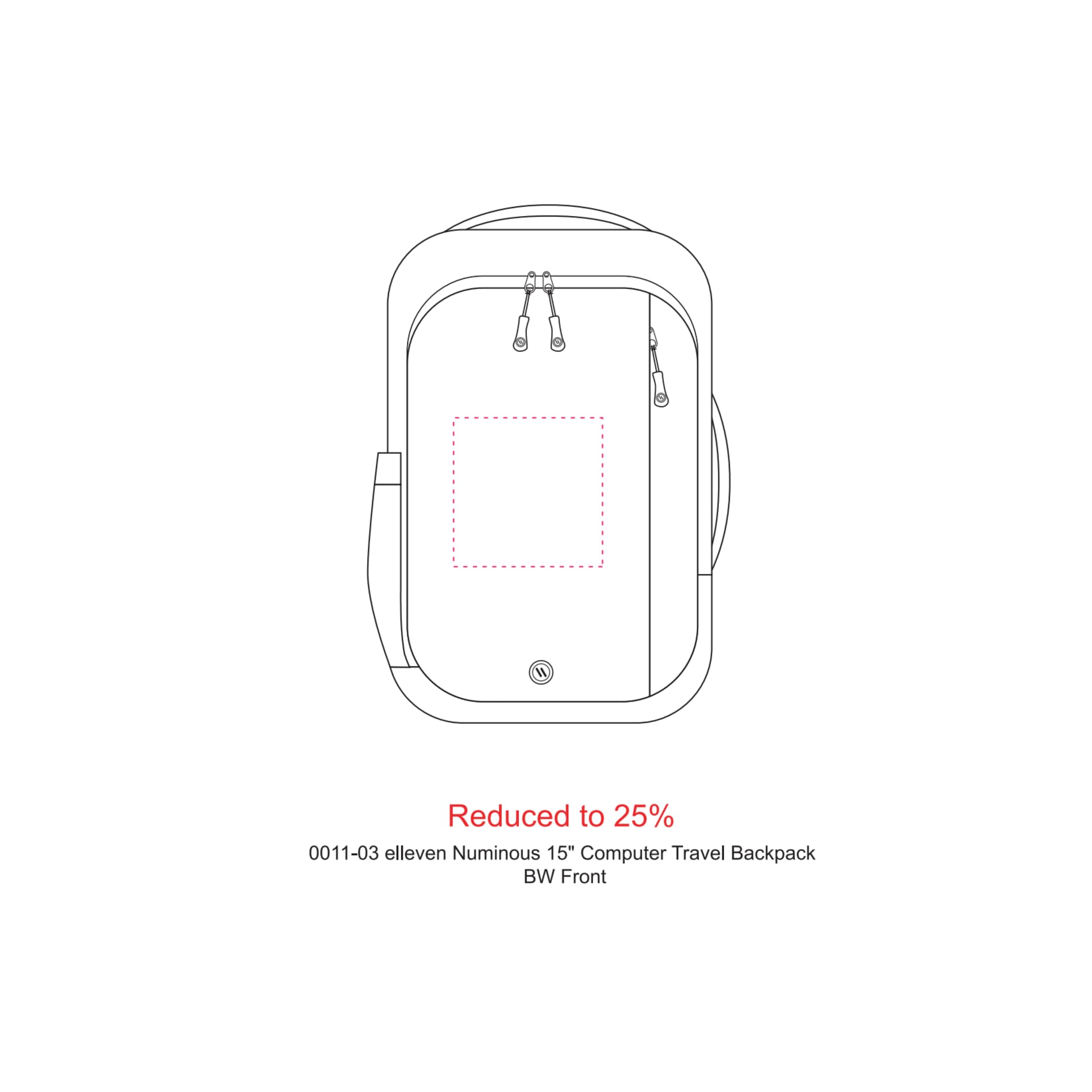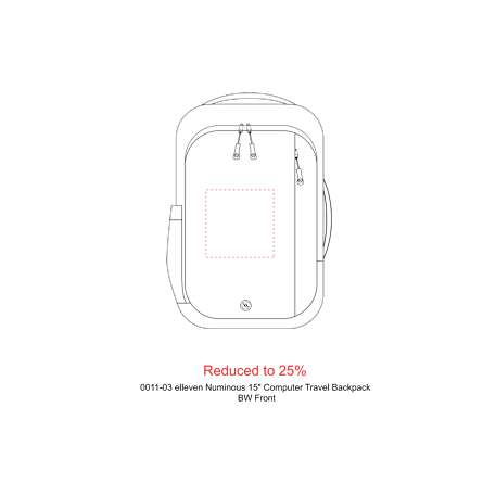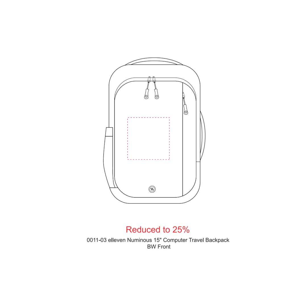 The elleven Numinous 15” Computer Travel Backpack is the ultimate travel companion. This backpack features a side USB port with cable and a dedicated, padded laptop compartment with organizational panel. Extra organization is a breeze with the hidden back RFID pocket, top zippered accessory pocket, zippered front pocket and water bottle sleeve. With custom matte lining, trolley sleeve, side grab carry handle, side compression straps, padded back and padded, adjustable shoulder straps, this backpack will be your new go-to anytime you travel. Use wireless earbuds? This backpack features magnets on the shoulder straps for holding your earbuds. Free embroidery run charges on up to 10,000 stitches.