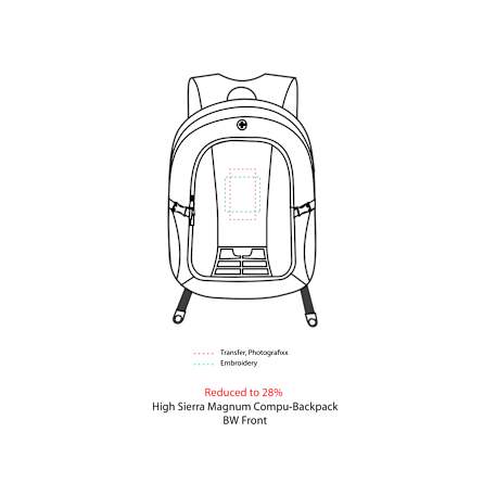 The High Sierra® Magnum 15" Computer Backpack features a padded interior computer sleeve, with a back-access zipper, that holds up to 15 inch laptop. Also comes with a deluxe organizer with pen pockets, a zippered mesh pocket and key fob and a Tricot-lined pocket with a headphone port. Zippered side pockets for accessories. Yoke-style, S-shaped Vapel™ mesh Airflow™ padded backpack straps with a suspension system, cell phone pocket and an integrated grab handle. Features a Vapel mesh Airflow padded back. Includes lifetime warranty.