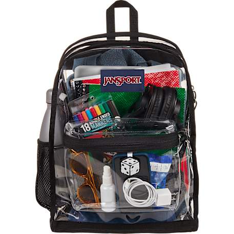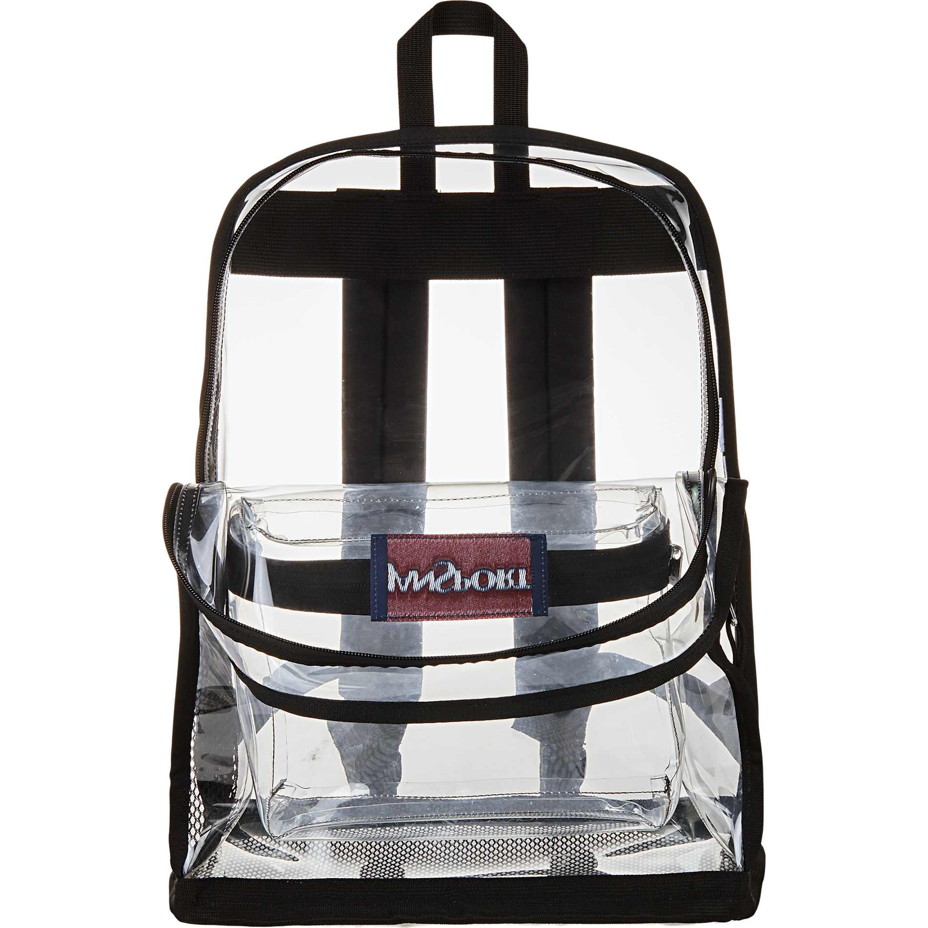 The Jansport Clear Backpack offers effortless visibility and organization for your gear. Store larger items in the spacious main compartment and smaller essentials in the front zippered pocket. A side water bottle pocket and adjustable shoulder straps provide convenience and comfort, making it perfect for school, events, or everyday use