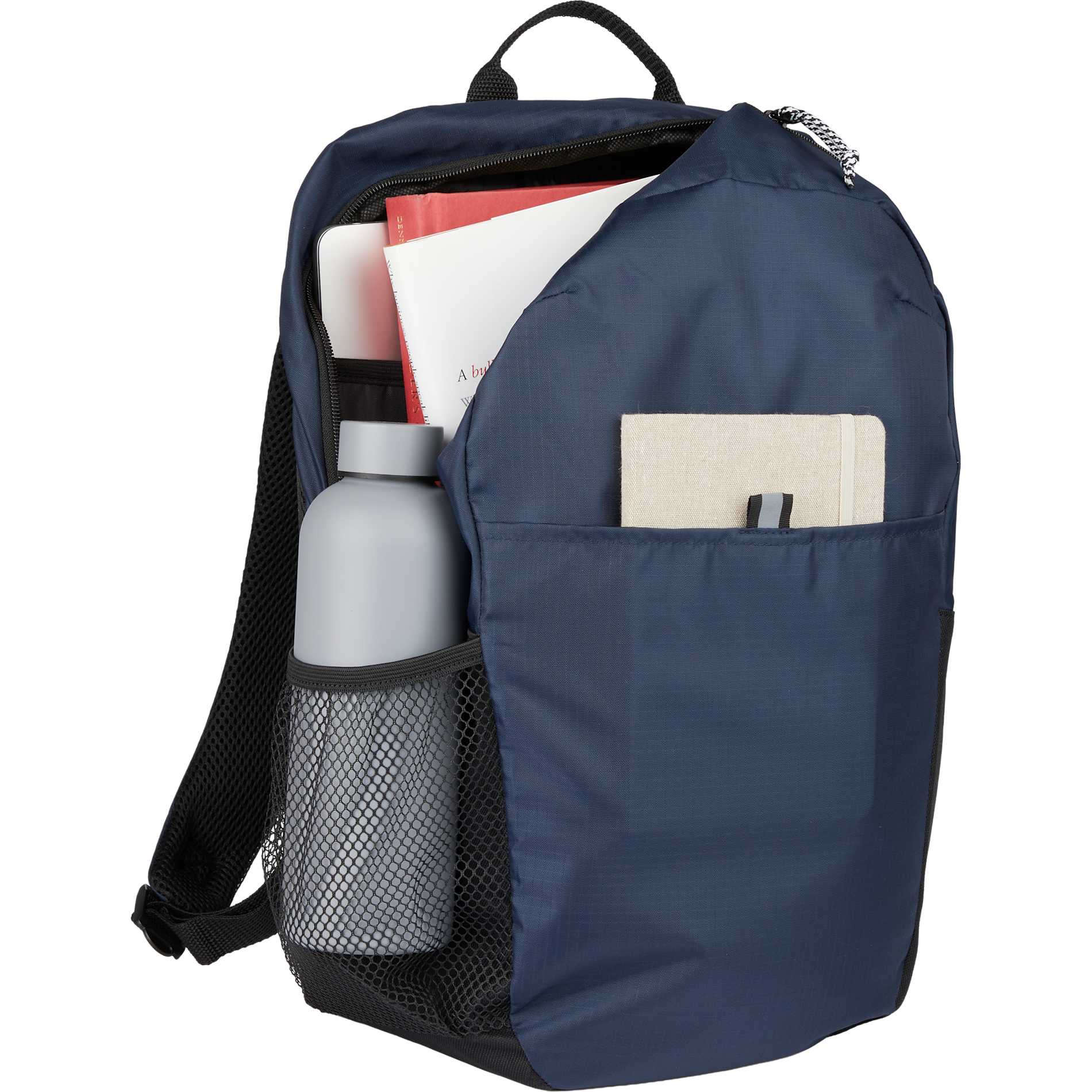 The Rocky Backpack is built for life on the move—whether you're commuting or heading out on your next adventure. Crafted from recycled ripstop material, it offers a subtle outdoor aesthetic with everyday functionality. Designed with two side water bottle pockets, a front pocket for easy organization, and an open main compartment with a padded back panel and laptop sleeve. A top grab handle makes travel effortless wherever you go