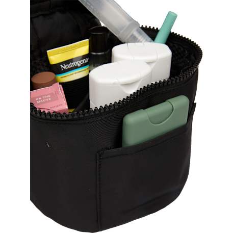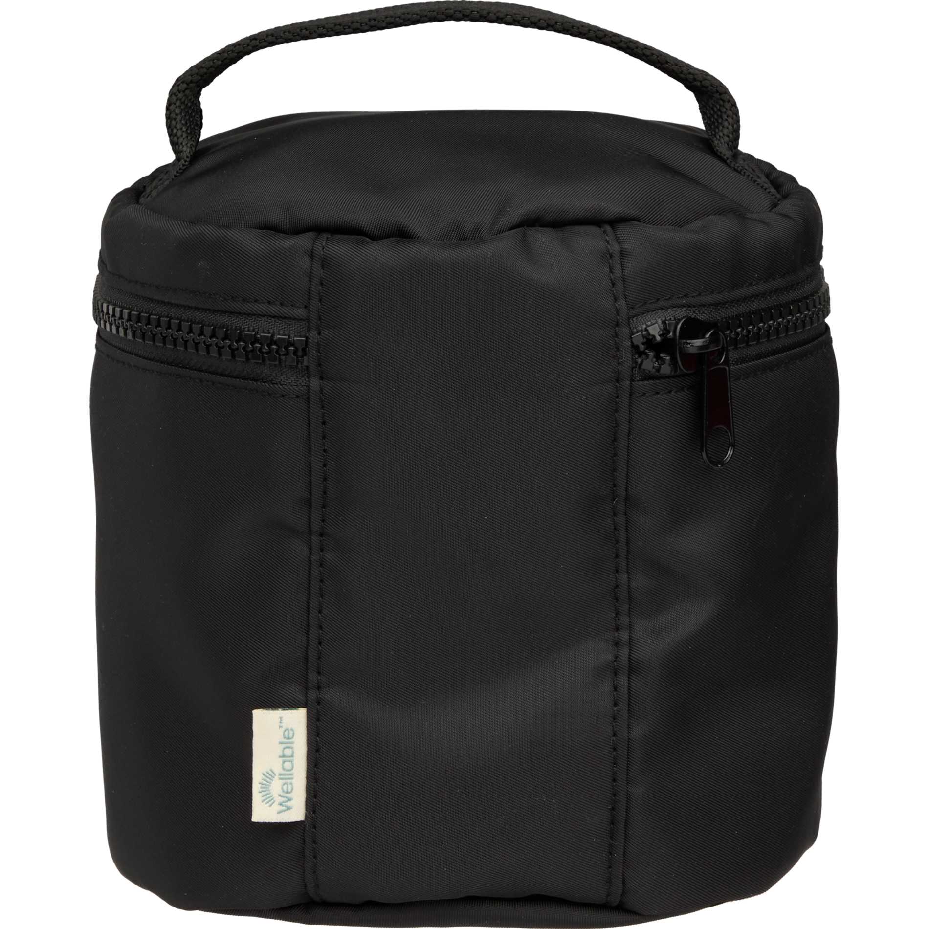 The Wellable recycled round travel case is our newest dopp kit. Made with rPET, it’s easy to grab with its top grab handle. Add small essentials to its front pocket. Open inside to a mesh insert, a removable divider, and multiple interior pockets for storage. Fill this case with your toiletries and travel items, making packing a breeze.