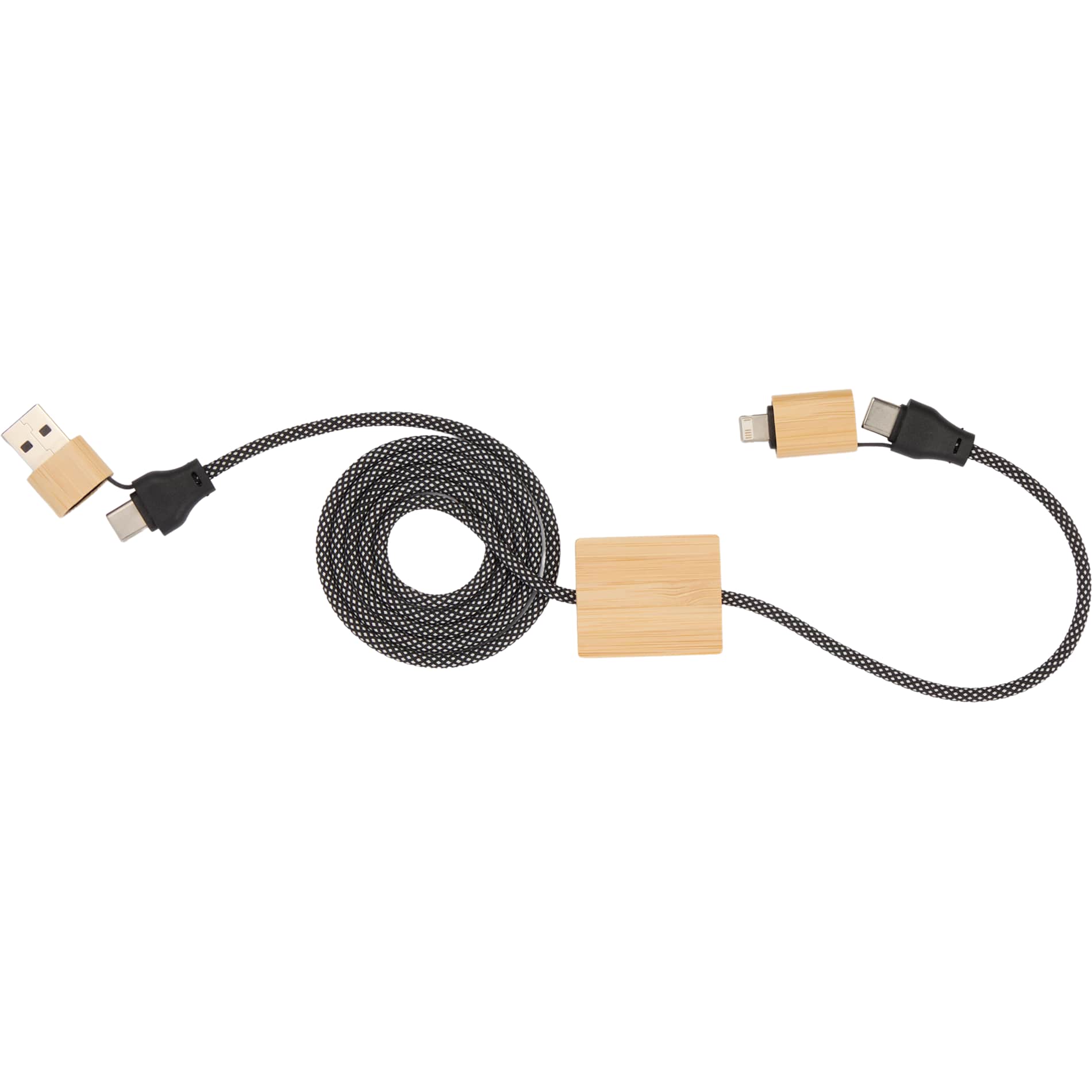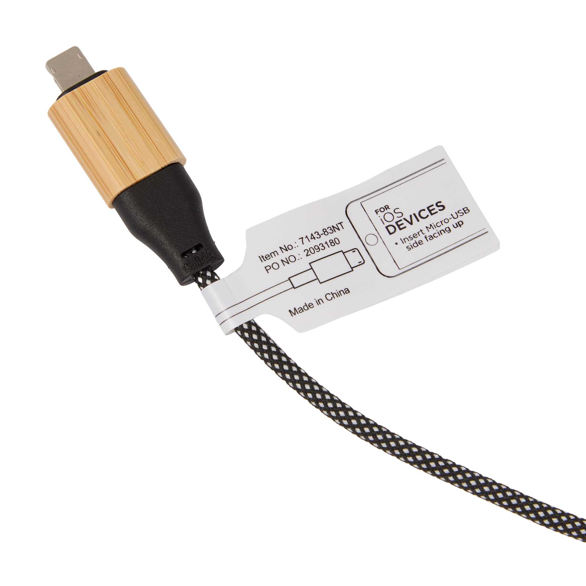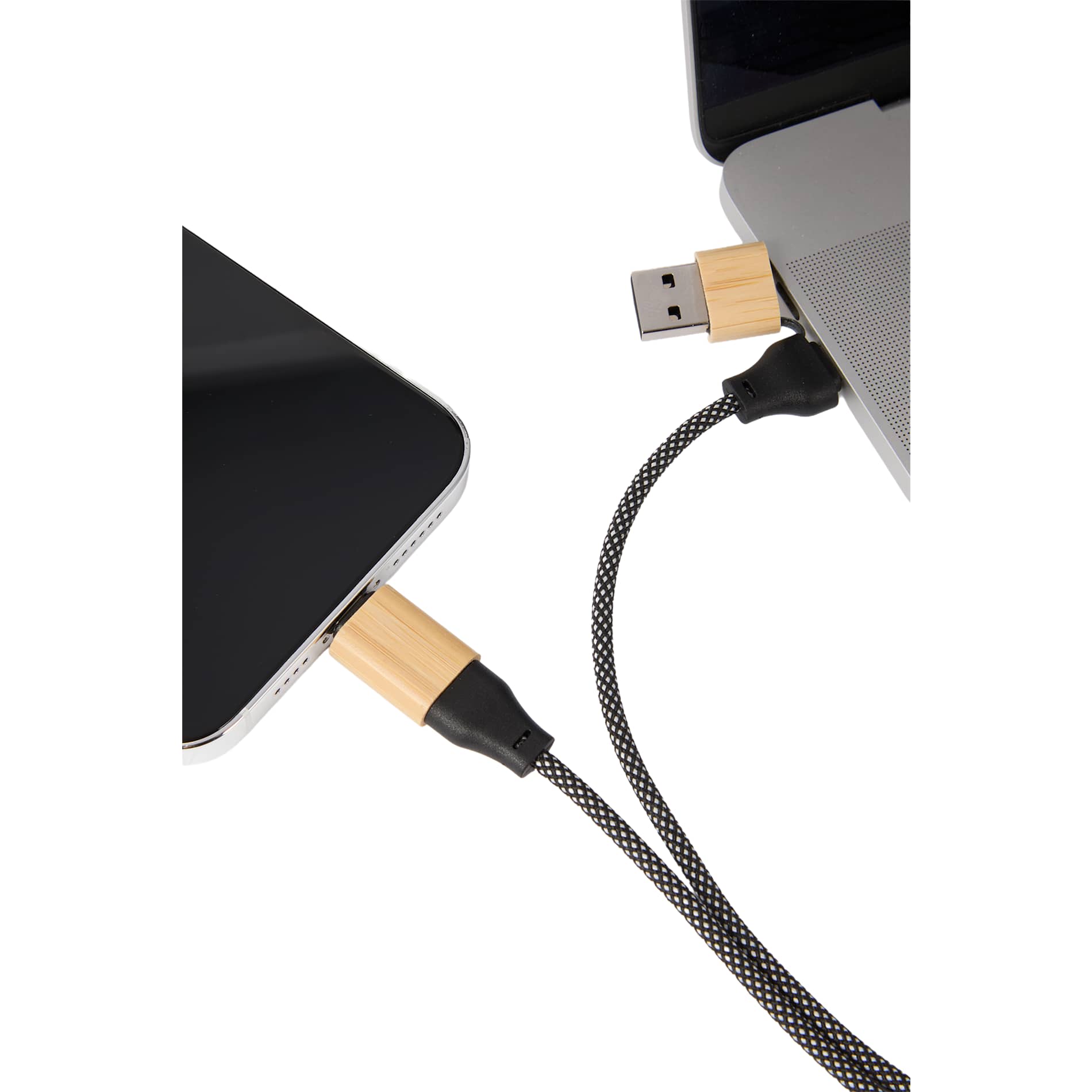The FSC® 100% Bamboo 5-in-1 100W Laptop Charging Cable is 39.3-inch long and includes a USB-A input adapter and a Type-C input tip on one side. The other side includes a two-in-one dual compatible tip for both Apple iOS devices and Android devices (up to 9V/2A, 18W charging speed). By using USB-A to Type-C type with appropriate AC adapter, it can reach up to 18W. By using Type-C to Type-C type with appropriate AC adapter, it can reach up to 100W to charge laptops with Type-C port. It also features casing crafted from FSC® 100% Bamboo material. It is recommended to use an AC adapter, power bank or car charger to charge devices, instead of using outputs from laptop or computer as power source. Through a partnership with 1% For The Planet, one percent of sales of all EcoSmart® products are donated to environmental nonprofits. Due to the nature of the material, there may be color variances.