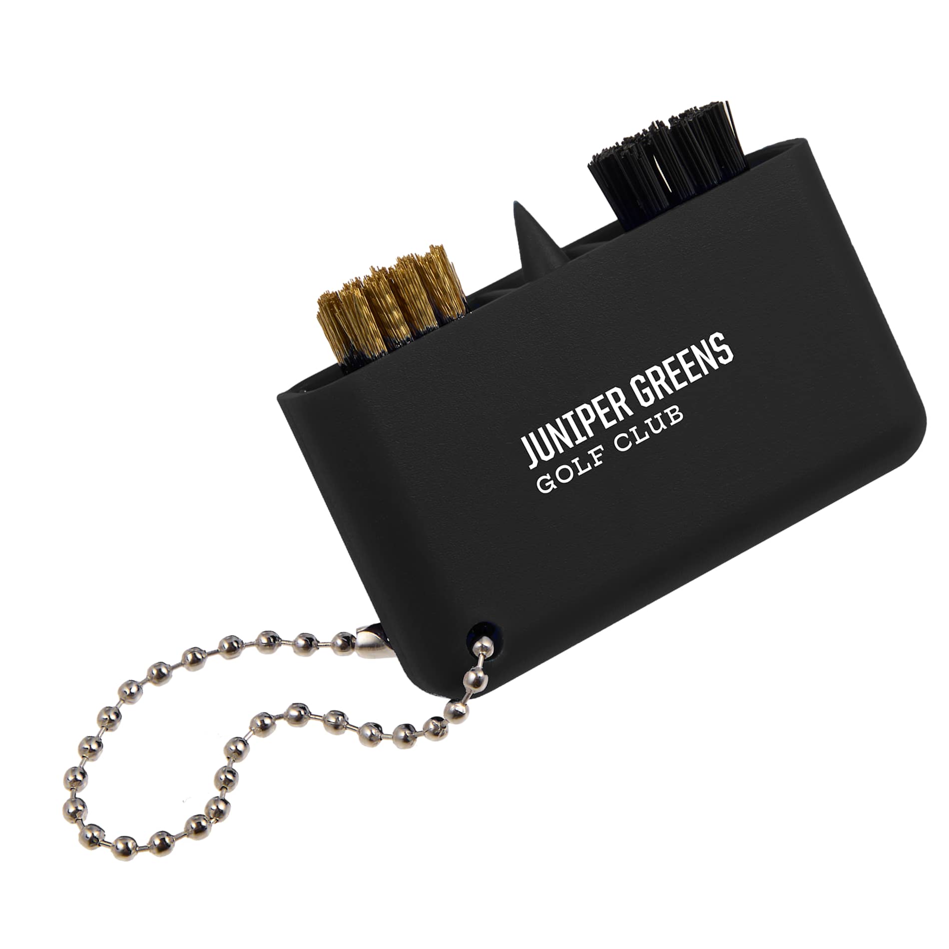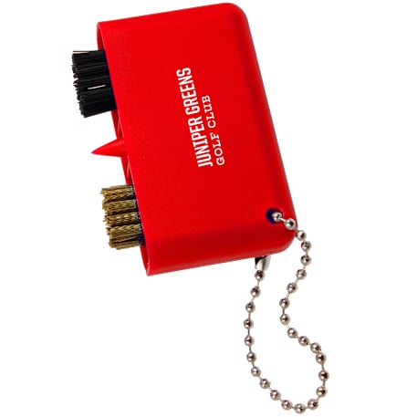 The 3-in-1 Golf Cleaning Multi-Tool is all you need to keep your golf clubs and accessories clean and ready for action! This compact, multi-functional tool features a brass wire brush for tougher cleaning, a nylon brush for delicate surfaces, and a pointed plastic tool to clean out grooves in clubs. With a convenient ball chain attachment, it easily clips onto your golf bag or belt loop. One percent of sales of each purchase of this tool supports environmental nonprofits through a partnership with 1% For The Planet.