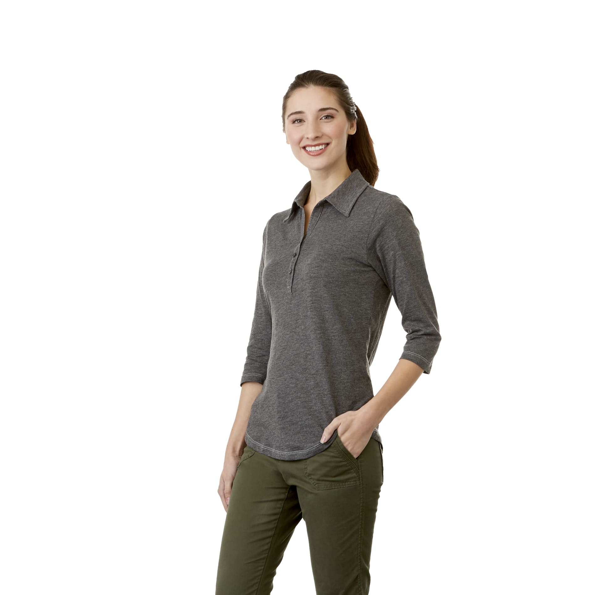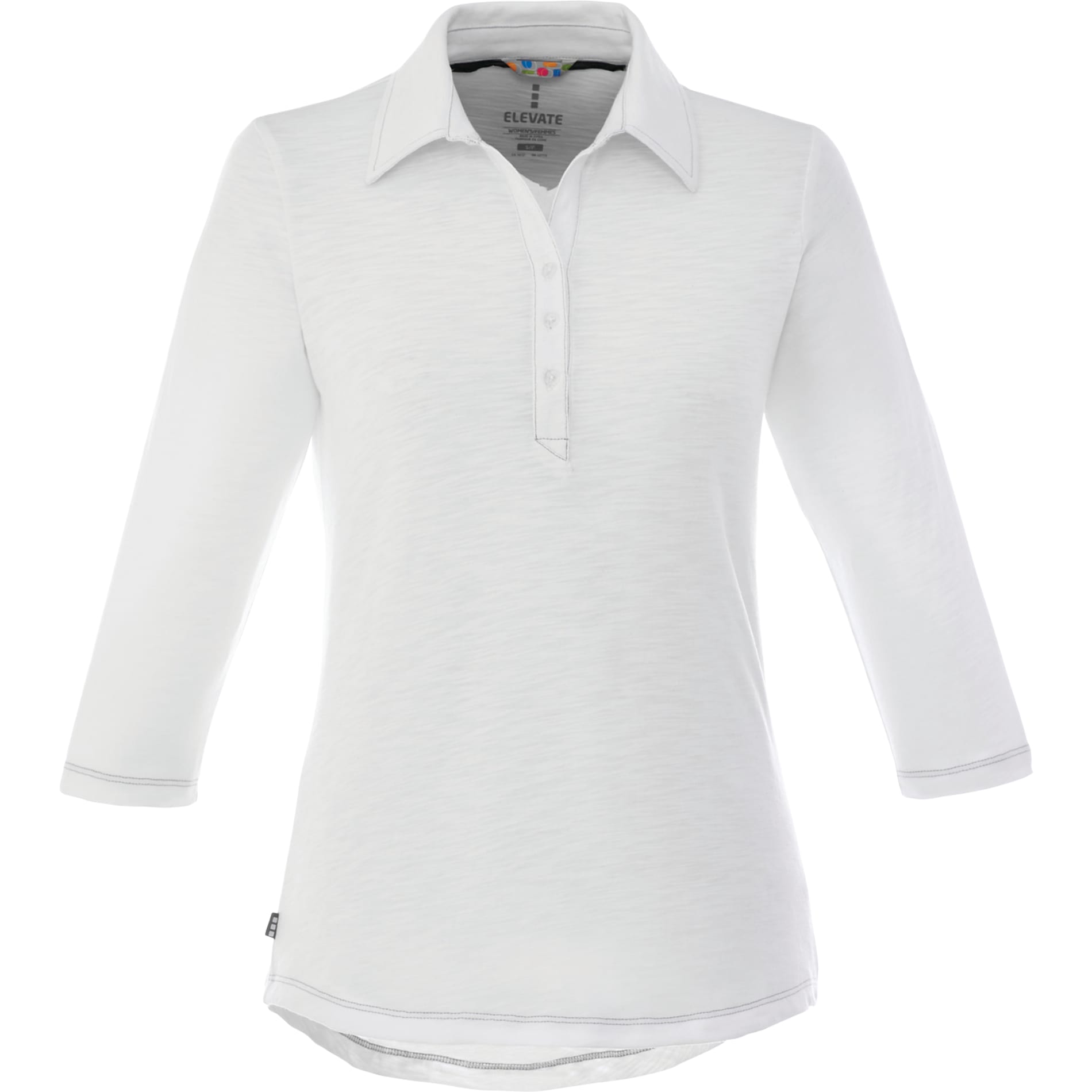 The versatile Tipton Polo has a vintage feel, with contrast stitching against a heather fabric at the collar, placket and shoulder seams. The Tiptons performance, however, is decidedly mode : a breathable polyester-cotton knit with wicking finish, UV protection and snag resistance. The womens version of the Tipton has three-quarter sleeves, a shirttail hem and tapered waist for a flattering fit. Both the mens and womens have a woven Elevate tab on the right hip, hanger loop and heat transfer main label for tagless comfort.