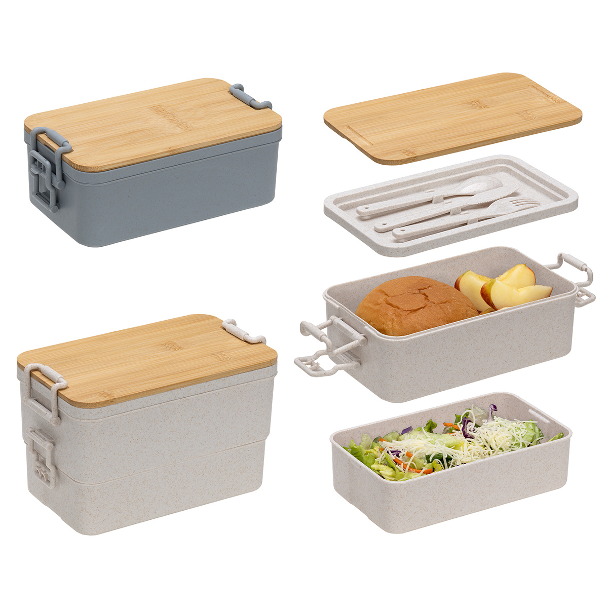 Item Description: Chuckwagon Stackable Lunch Box With Bamboo Lid & Utensils