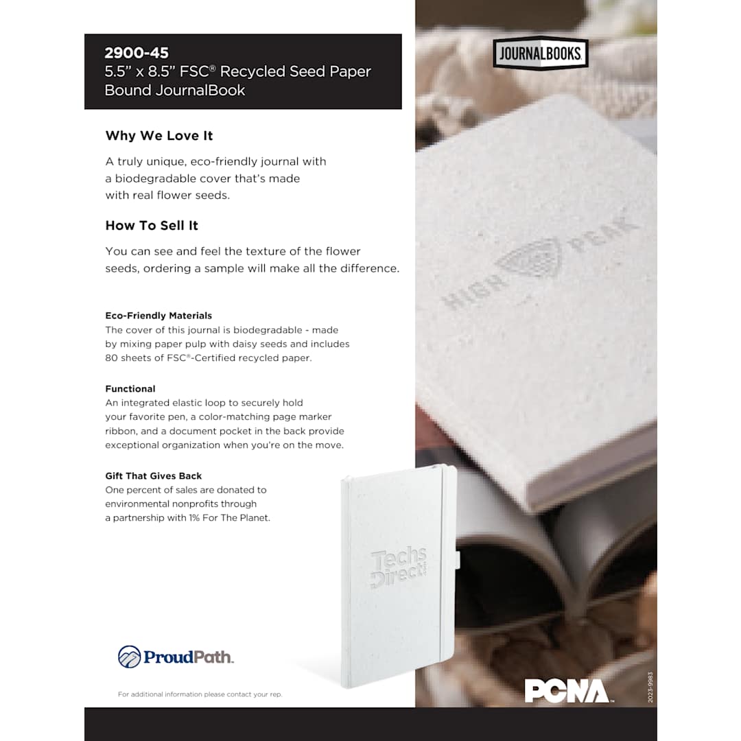 The 5.5" x 8.5" FSC® Recycled Seed Paper Bound Jou al features a biodegradable seed paper cover – made by mixing paper pulp with daisy seeds. The jou al also includes 80 sheets of FSC®- Certified Recycled lined paper. An elastic band, color-matching page marker ribbon, and a document pocket in the back provide exceptional organization when you’re on the move. The jou al also features an integrated pen loop to securely hold your favorite pen. Through a partnership with 1% For The Planet, one percent of sales of this item are donated to environmental nonprofits.