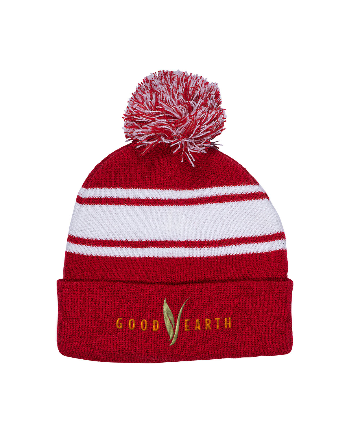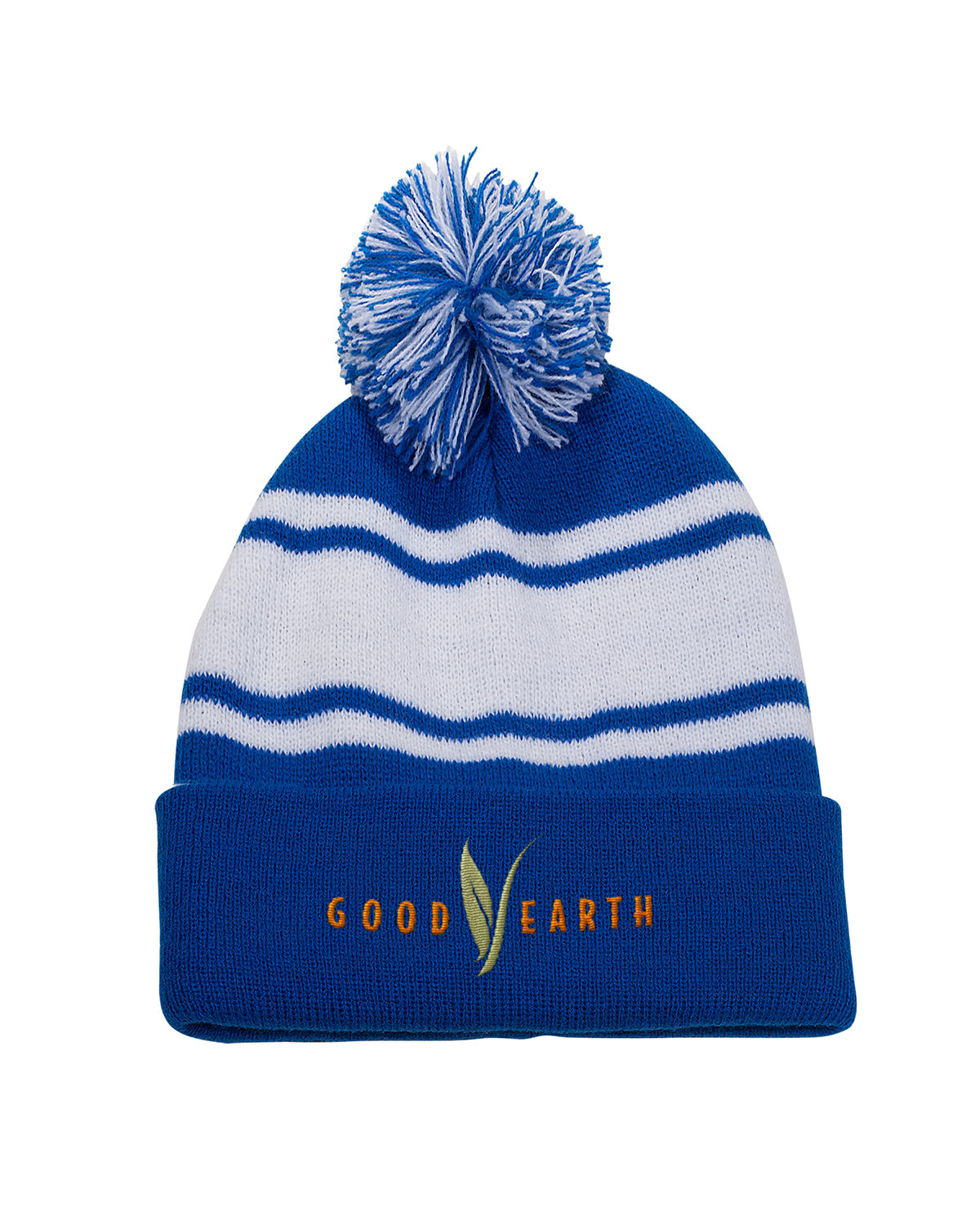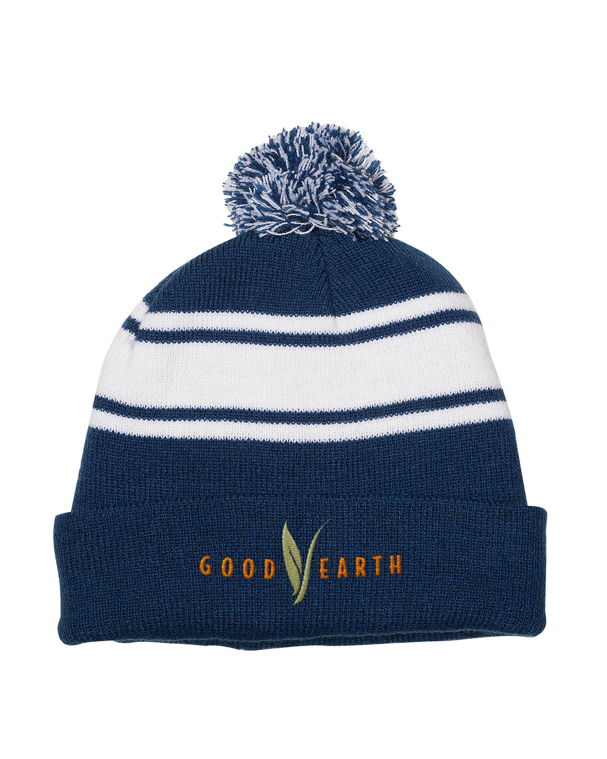 100% Acrylic rib knit beanie featuring a two-tone pom pom on top