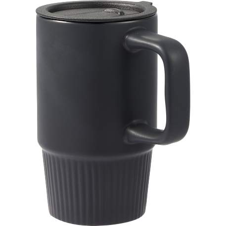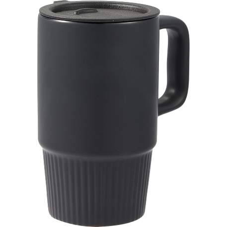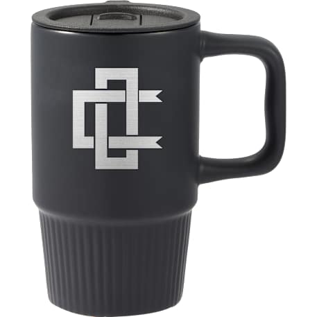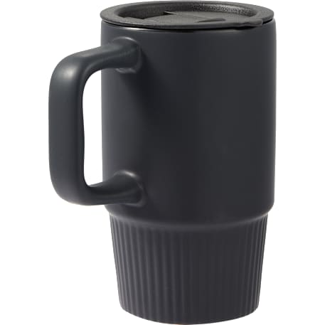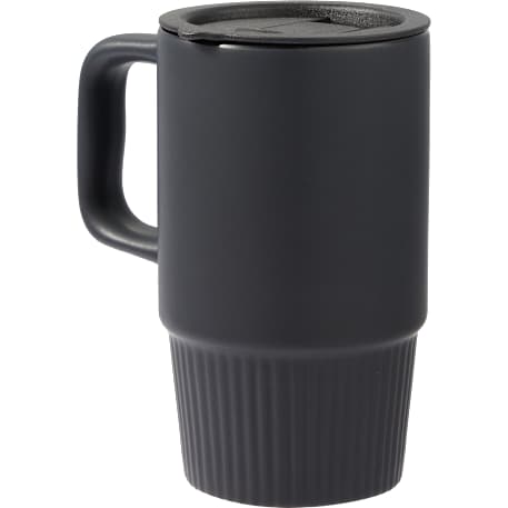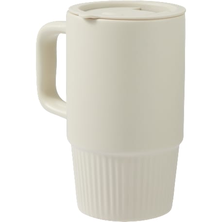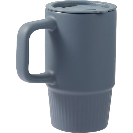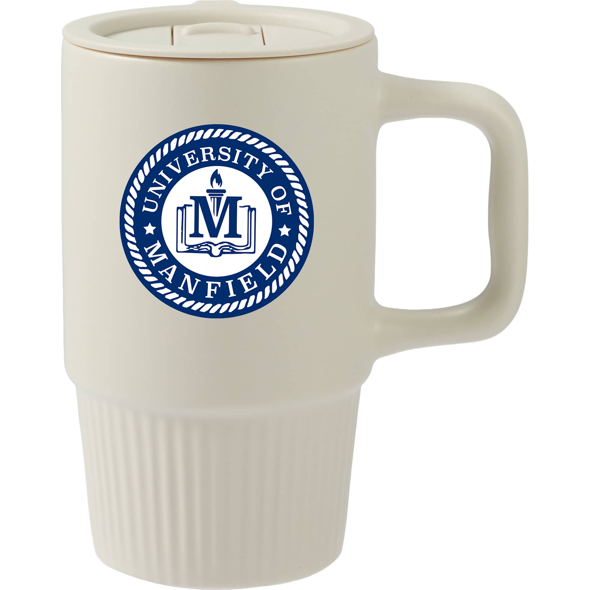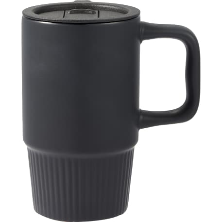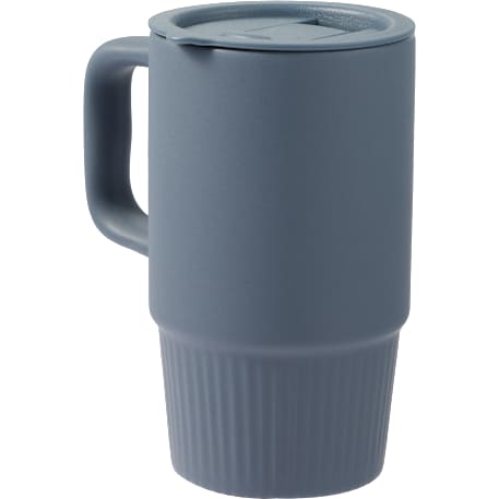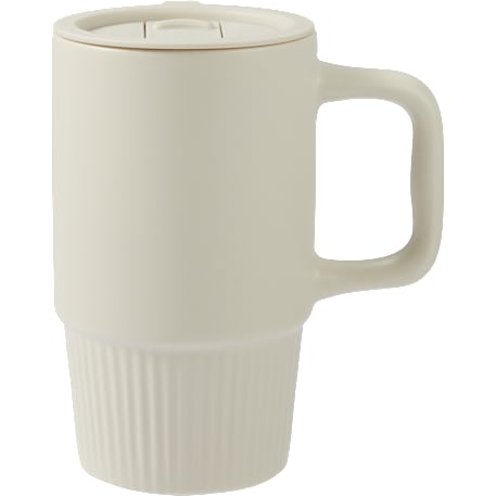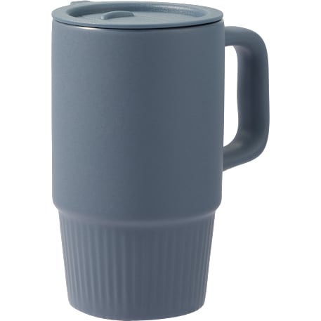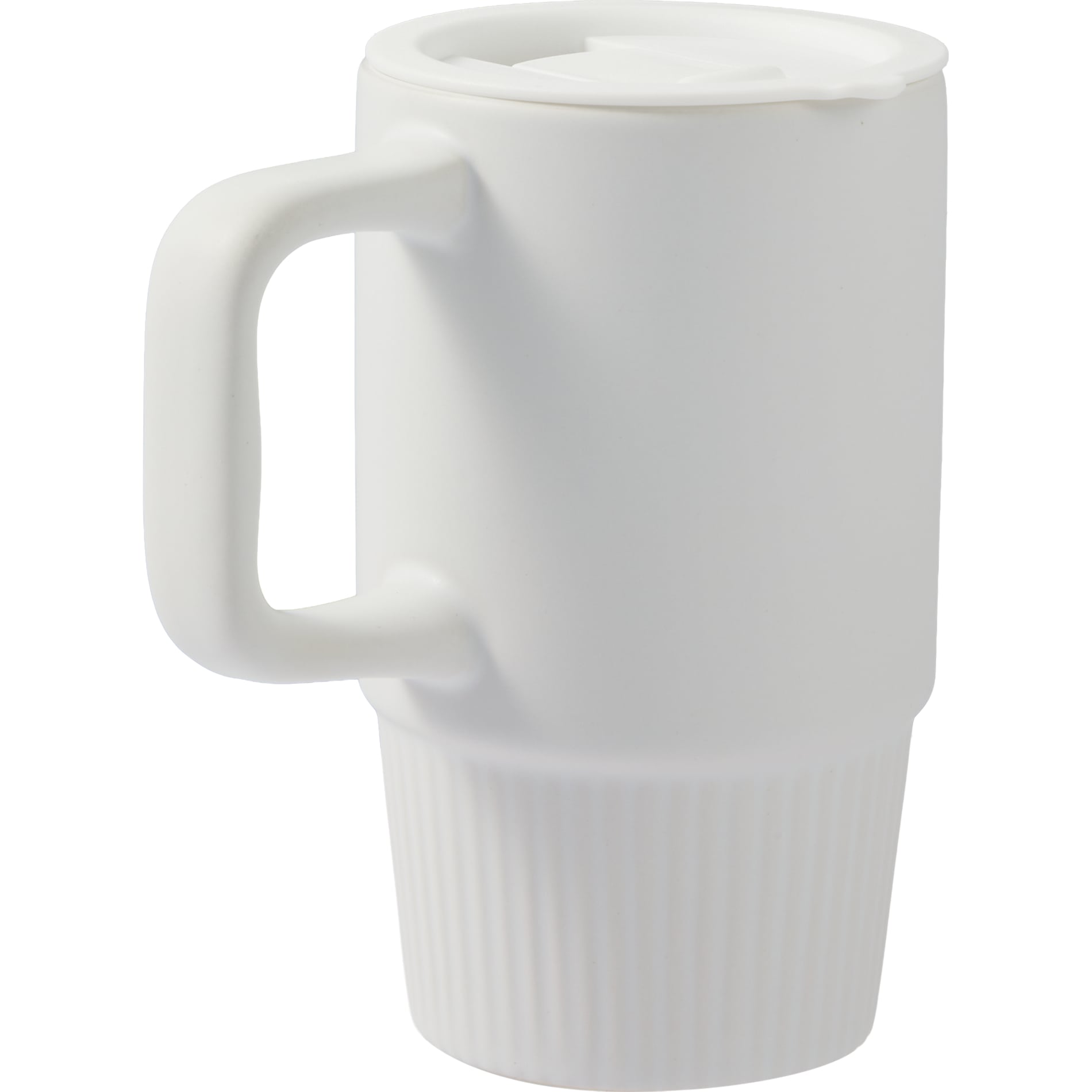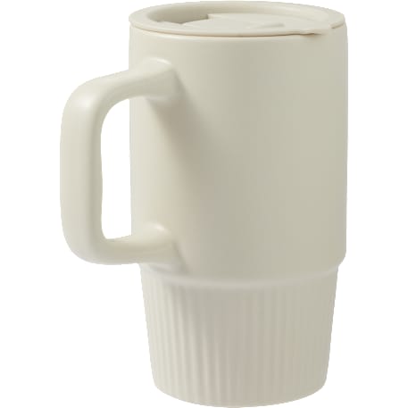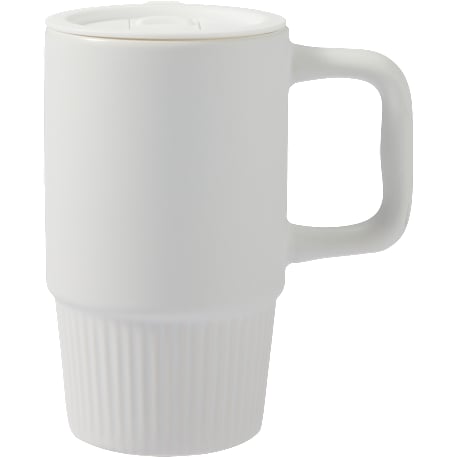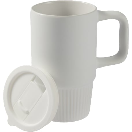 Check this mug out! intrdoucing Camden 13oz Ceramic Mug w/ Lid perfect for at the office or breakfast table the vertical lined patte on the bottom and wide handle is a great addition to your cupboard the slide lid will keep your bevrage hot and will prevent splashes. Hand wash