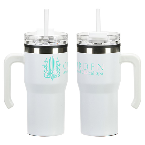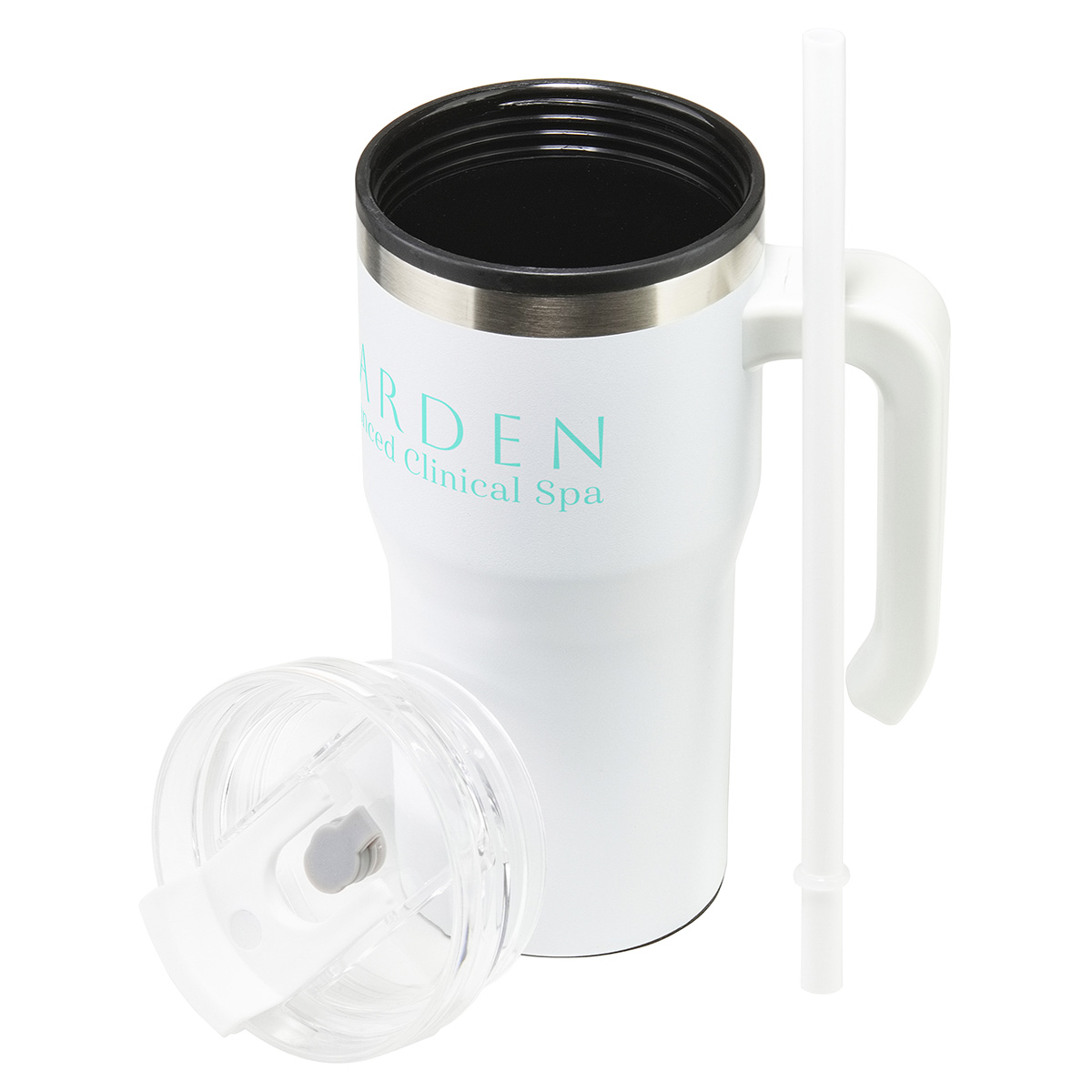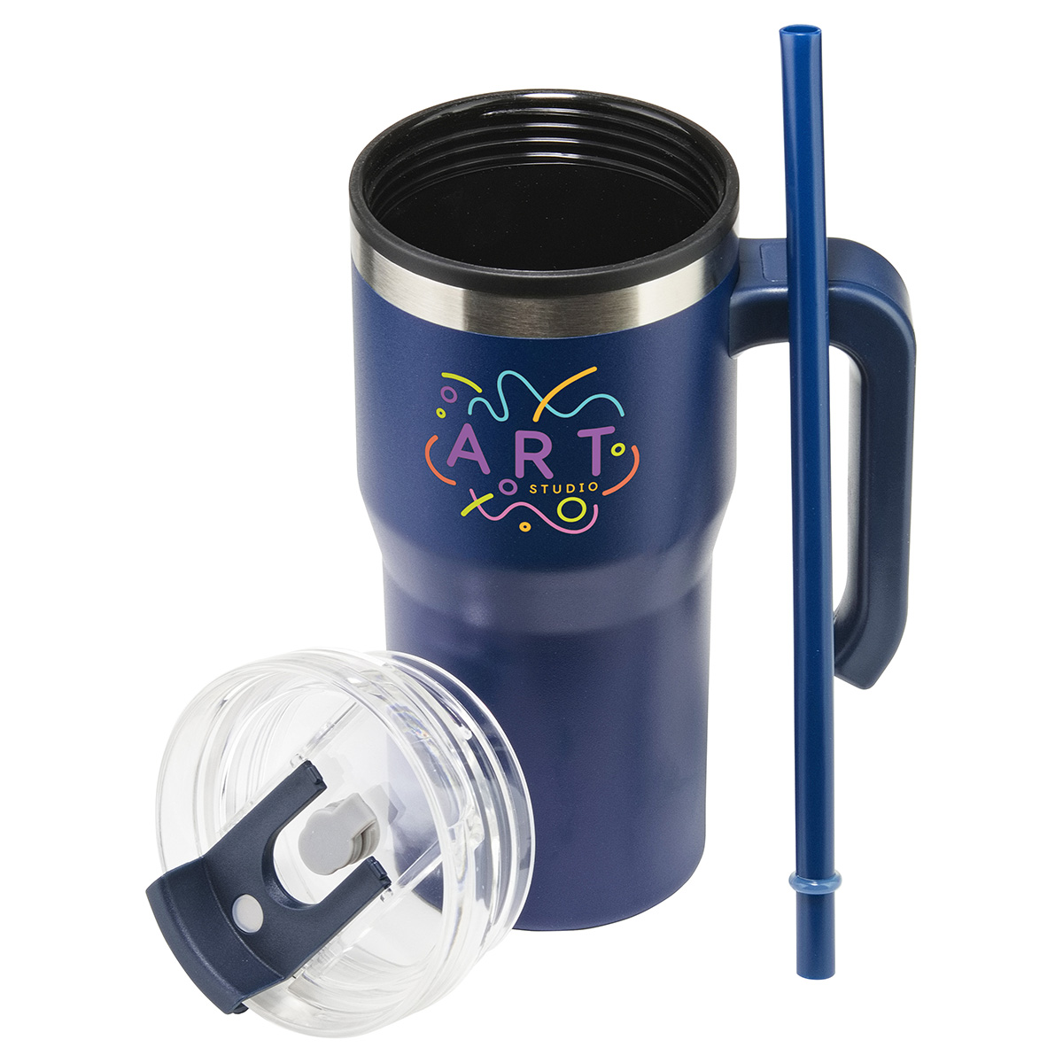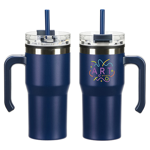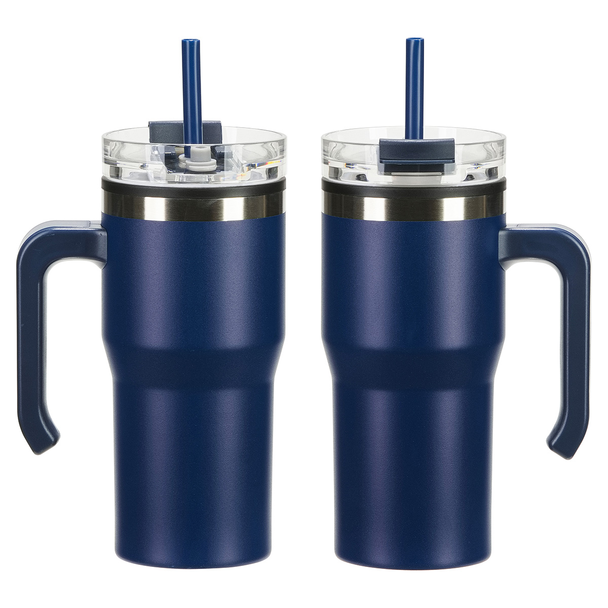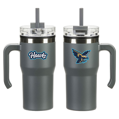 Experience ultimate hydration with our Outback 20 oz Stainless Steel/Polypropylene Mug with Lid and Straw, featuring a sleek stainless steel outer shell and a black polypropylene inner lining. The clear screw-on plastic lid includes a leak-resistant high wall, ensuring no spills. Designed with a color matched plastic handle for easy carrying, this mug keeps beverages hot or cold for up to 3 hours. It's BPA-free and FDA certified for safety, making it perfect for everyday use. Hand wash only to maintain its quality and performance.