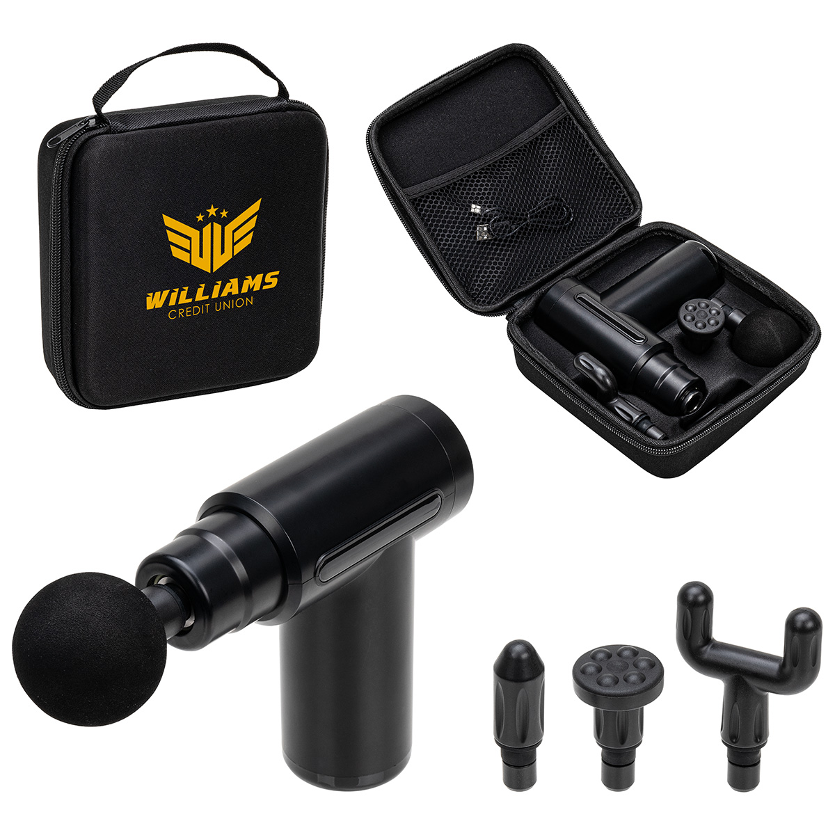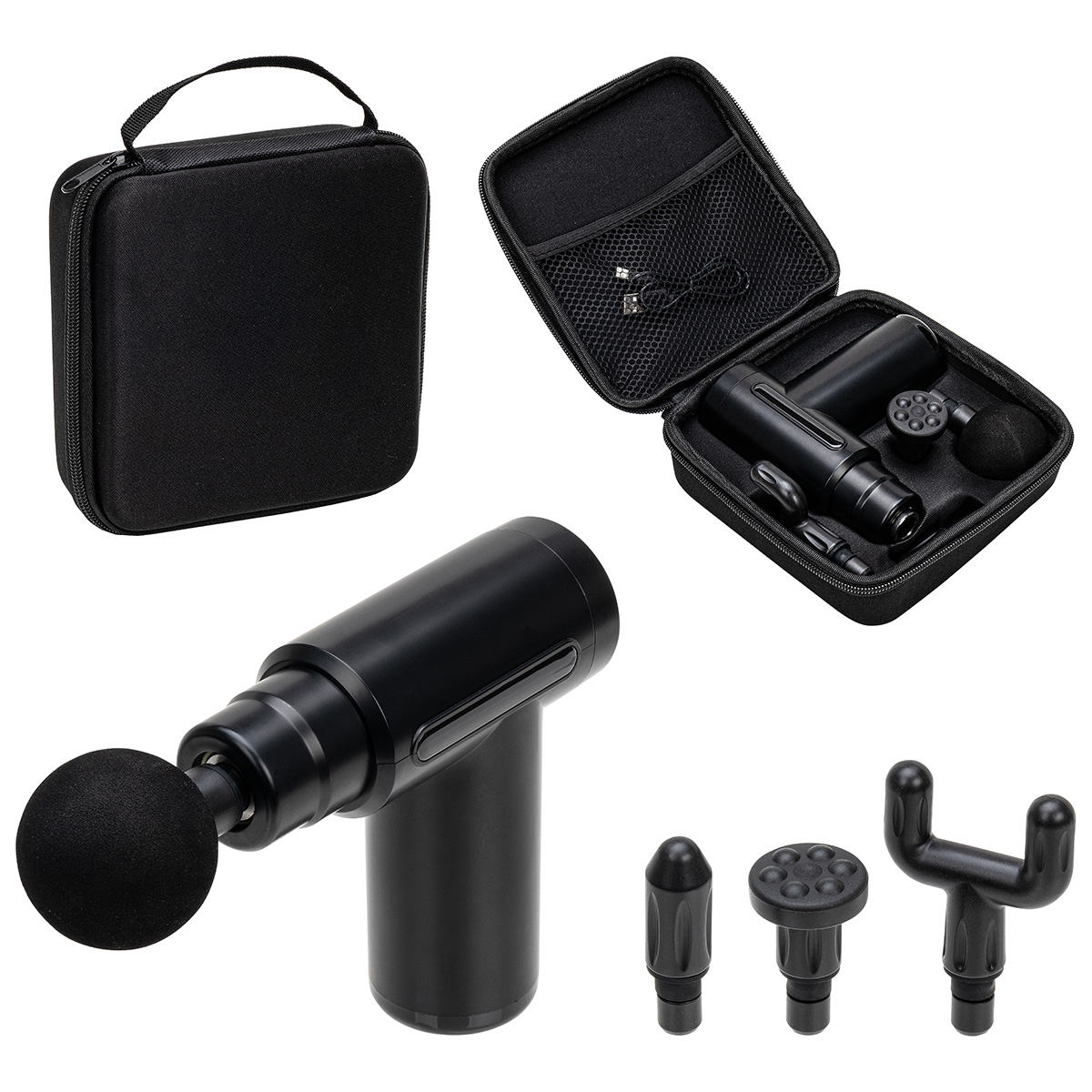The Crimson Massage Gun features 4 interchangeable massage heads for targeted relief, including bullet, flat, fork, and ball heads. Powered by a quiet motor under 50dB, it offers 6 speed levels up to 3200rpm for customizable intensity. With a 6 mm stroke length and built-in 2400mAh lithium-ion battery, it ensures powerful performance. Includes USB-C charging cable and a fabric zipper pouch for easy portability. Equipped with a 10 minute auto-off for safety.