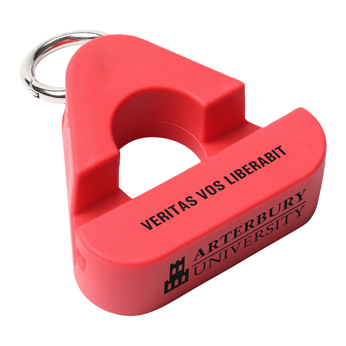 The Triangle Phone Stand securely holds your phone for hands-free viewing, perfect for home, office, or on-the-go use. Its compact design makes it portable and space-saving. Equipped with a convenient hook, it can attach to items like a dog leash for hands-free convenience during walks. The built-in carabiner allows easy attachment to bags, belts, or keychains. Made from durable materials, it ensures long-lasting use without adding bulk.