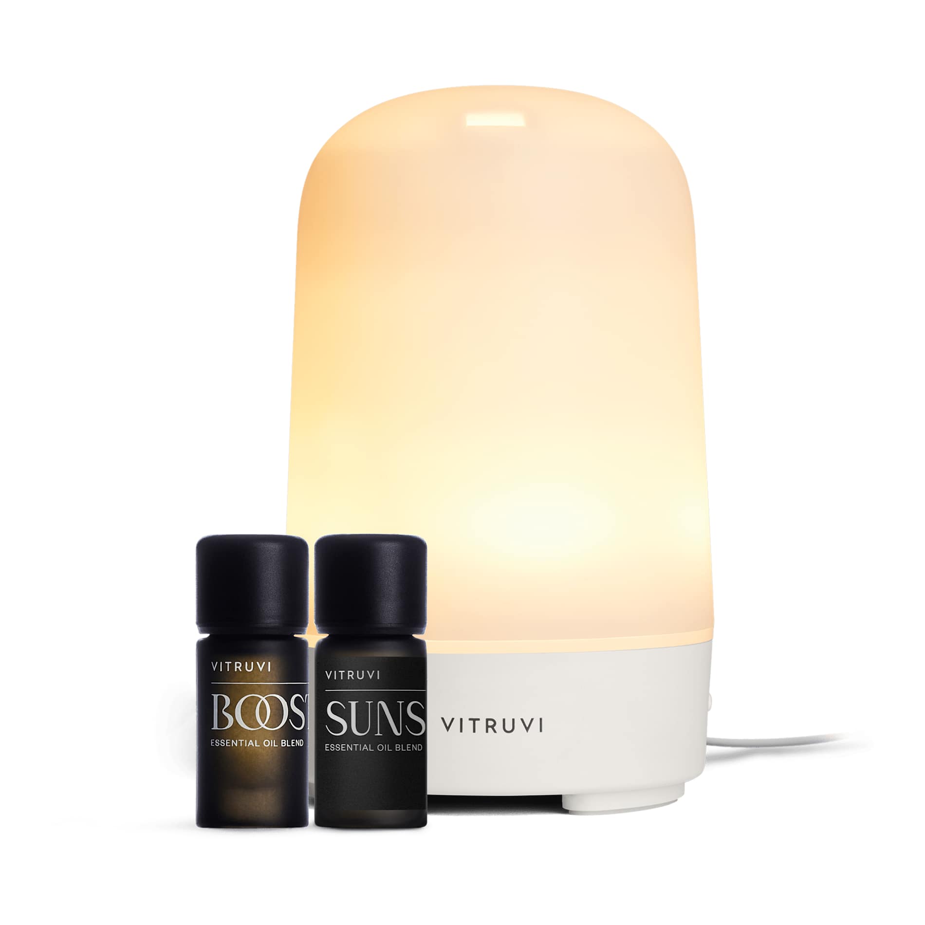 Elevate your home ambiance with the enchanting Vitruvi Glow Diffuser and Essential Oils Bundle Set. Designed to naturally scent your space with 100% pure essential oils, this diffuser also features a light-up body that creates a soft, ambient glow. The Glow Diffuser features an 8-hour run time, ensuring long-lasting fragrance throughout your day. The 100% pure essential oils create a relaxing and uplifting atmosphere.