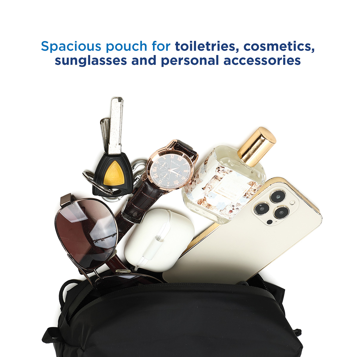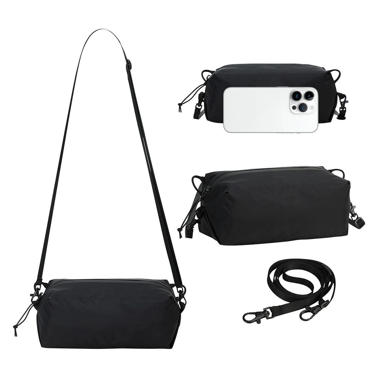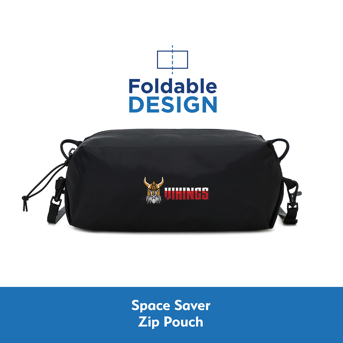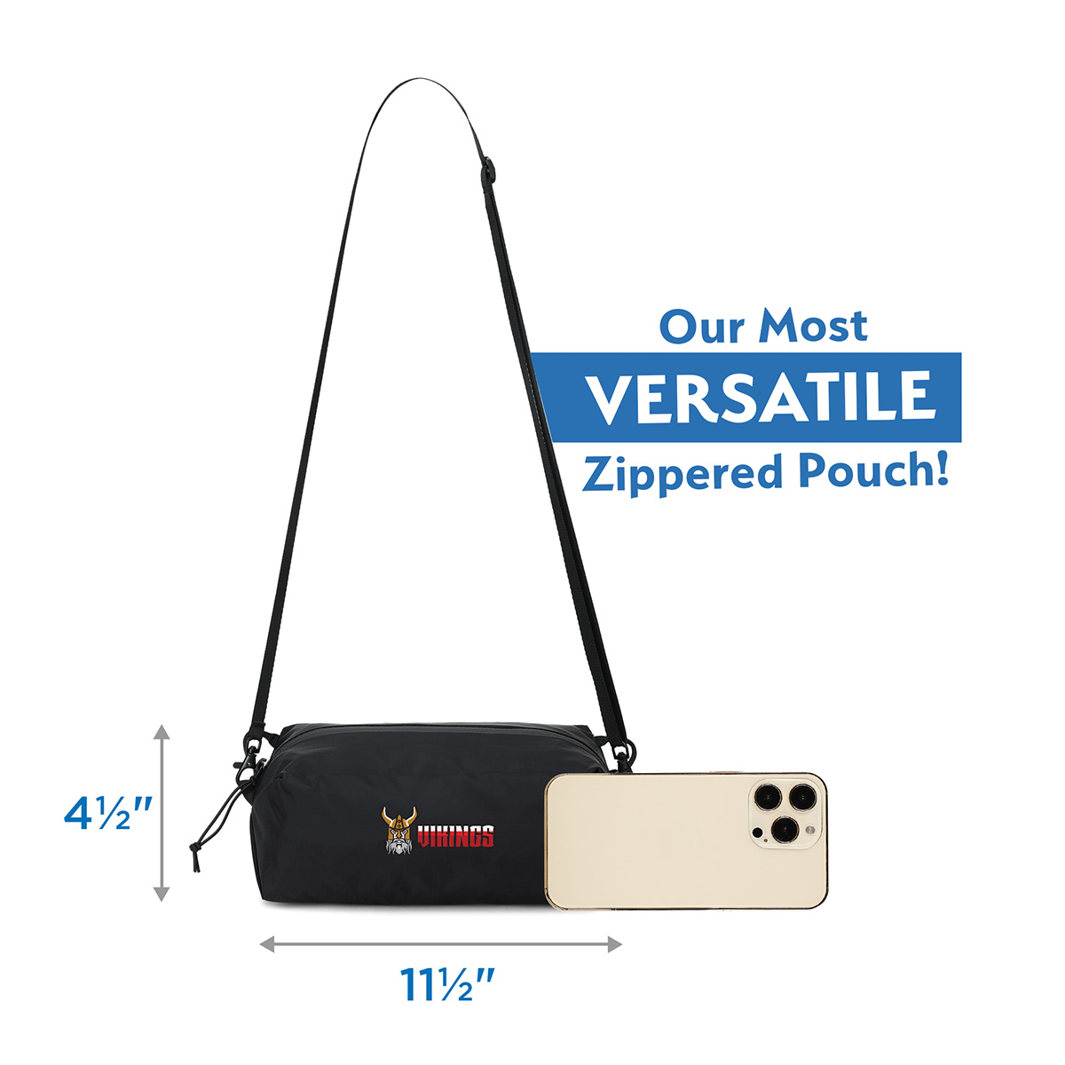 The AeroLOFT® Space Saver Zip Pouch is a lightweight, water-repellent sling bag made from durable ripstop polyester. Designed for convenience, it features a secure zippered closure and a simple roll-up design for compact storage. The adjustable shoulder strap offers hands-free carrying, making it ideal for travel or daily use. Measuring approximately 11-5/8 x 5-1/8 x 6-3/8 inches, it provides ample space for essentials while staying sleek and portable.