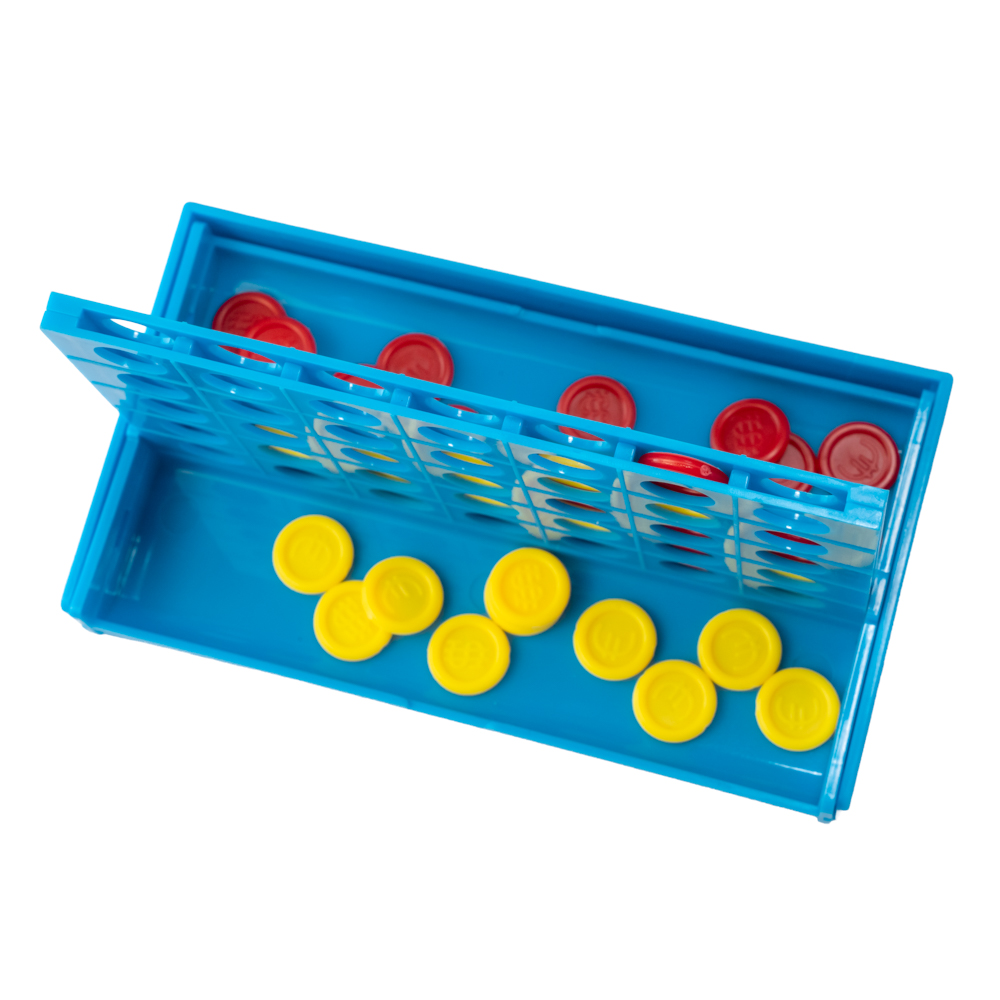 COMING SOON IN 2026! A compact handheld 4-in-a-Row Game for entertainment on the go! This portable version assembles quickly for play and packs down neatly when you're done. Its lightweight, travel-friendly design makes it perfect for road trips, commutes, or quick fun anywhere. This product is not intended for use by children or pets. It may present a choking hazard to children under 3 years of age.