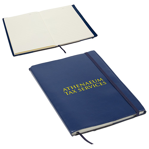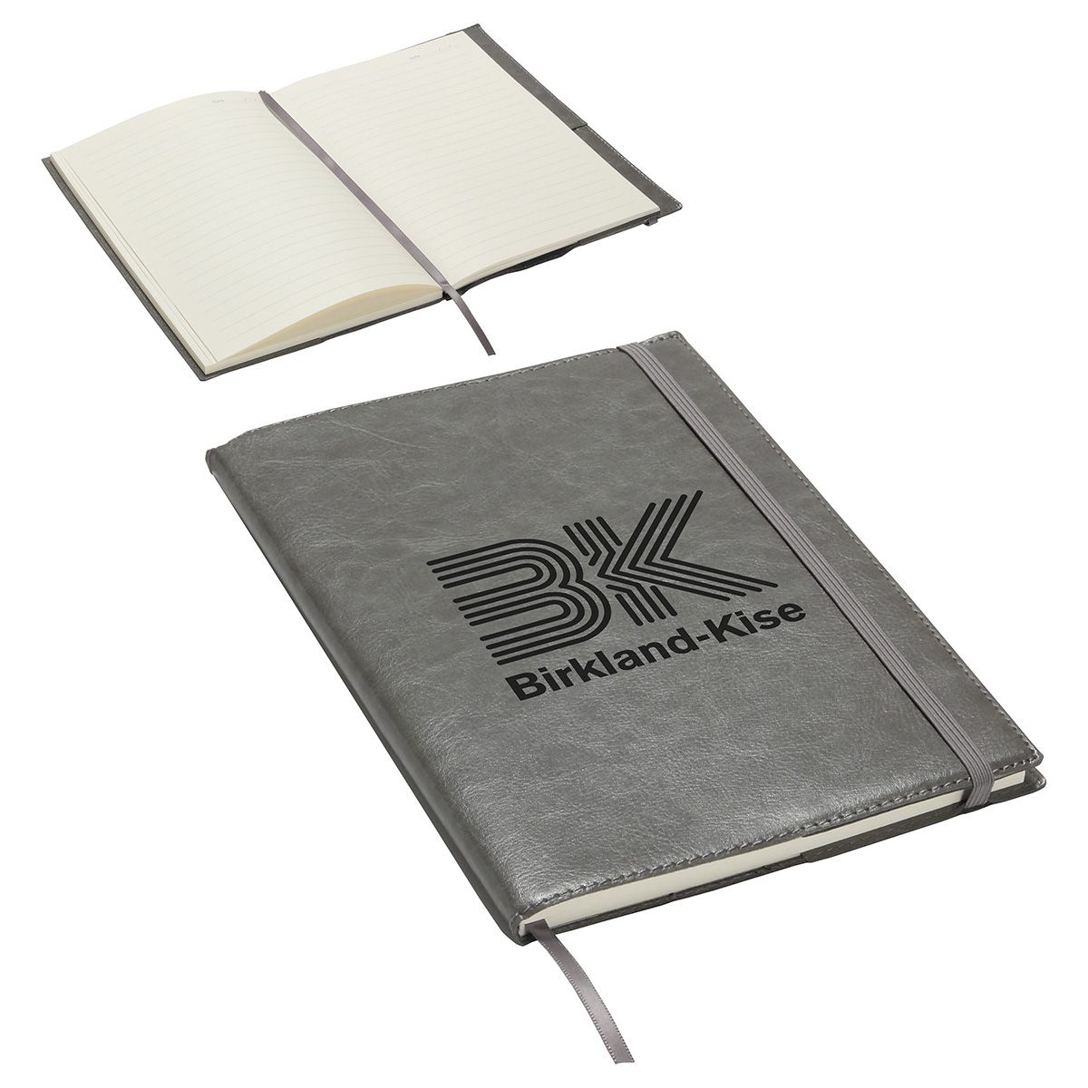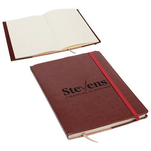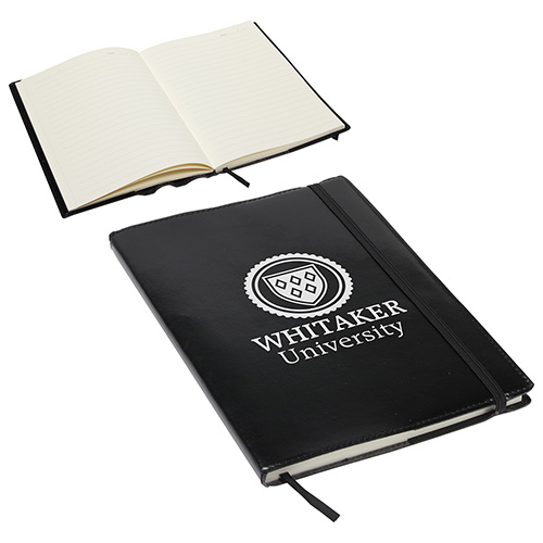 Our Conclave Jou al is made of a faux leatherette cover and includes a refillable 80-sheet paper pad using 80GSM Ivory ruled paper with date field, ribbon bookmark, elastic ribbon closure, pen loop and business card pocket.