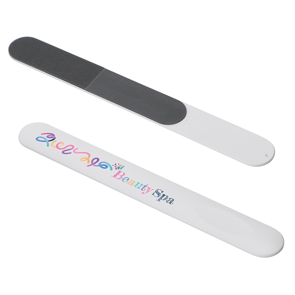 Shape and smooth with ease using the Salon Dual Nail File. Featuring a dual-sided design with durable steeled sandpaper and a sturdy ABS core, this compact tool is perfect for both natural and artificial nails. Lightweight and easy to carry, it’s ideal for salons, beauty kits, wellness giveaways, or personal care promos. A practical addition to any self-care routine or cosmetic campaign.