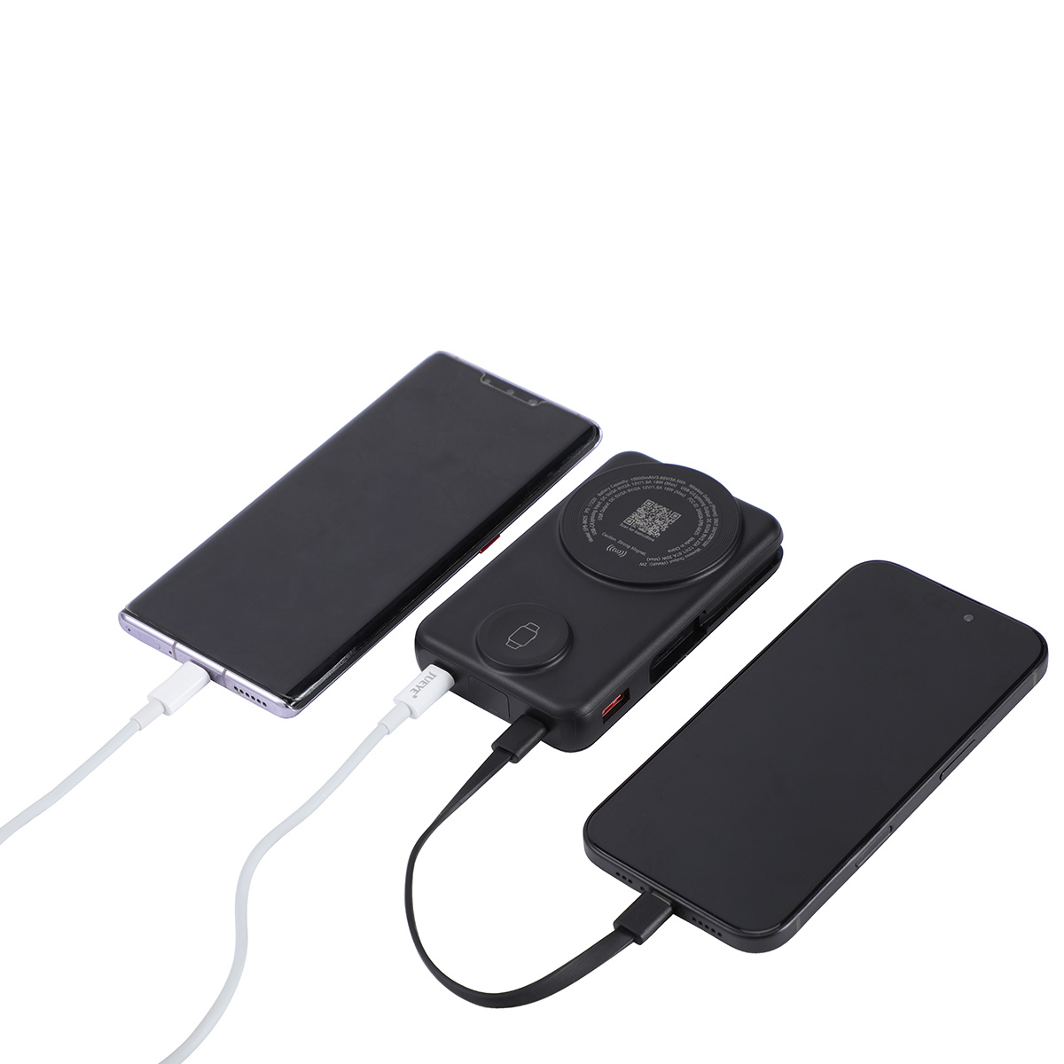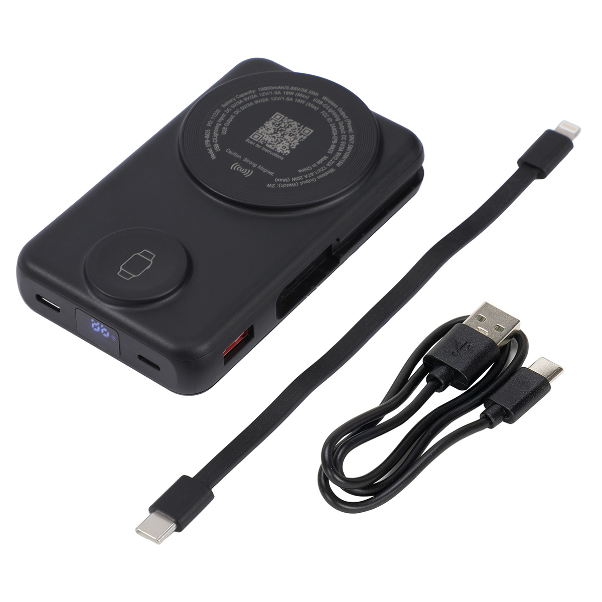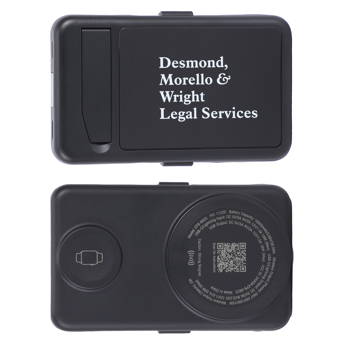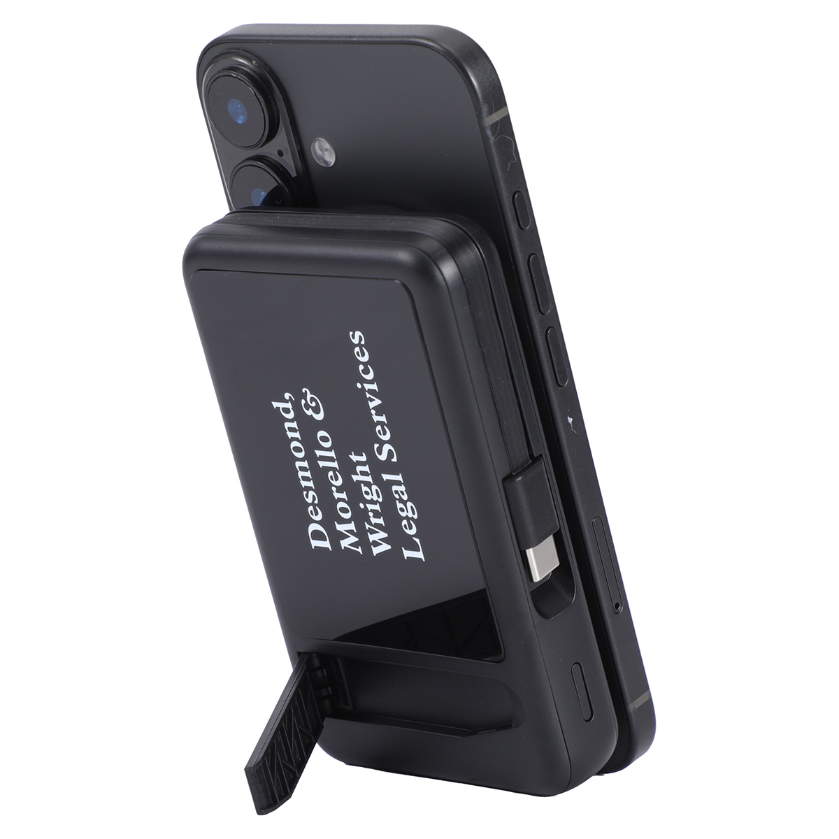 Power up in style with the Imperial 10000mAh Light-Up Power Bank. Featuring a glowing logo that lights up, either as a full color digital print or single color laser print, when the power bank is in use for standout branding. Includes built-in USB-C to Lightning cable, and 20W fast charging, it’s designed for mode convenience. Enjoy 15W magnetic wireless charging, a 2W watch charger, and multiple port options for versatile use. Compact and sleek, it even doubles as a phone stand—making it the ultimate all-in-one charging solution.