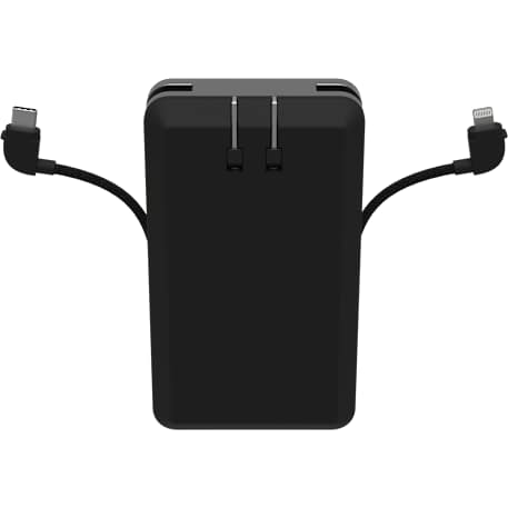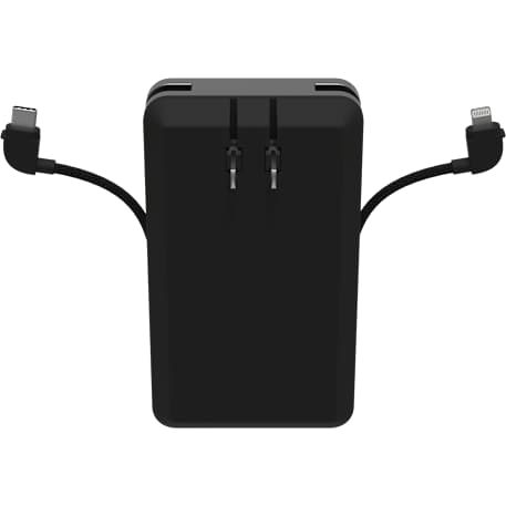 Powerstation Plus Ultra is the most convenient way to charge your devices on-the-go. Get fast charging speed with the 30W USB-C port. Powerstation Plus Ultra also has integrated USB-C and Lightning cables, so you can just plug your devices into the powerstation and start charging. Slip Powerstation Plus Ultra in your bag and power on. This 10,000mAh battery has a 30W USB-C port, a 30W USB-C cable, and 20W Lightning cable, and foldable wall prongs.