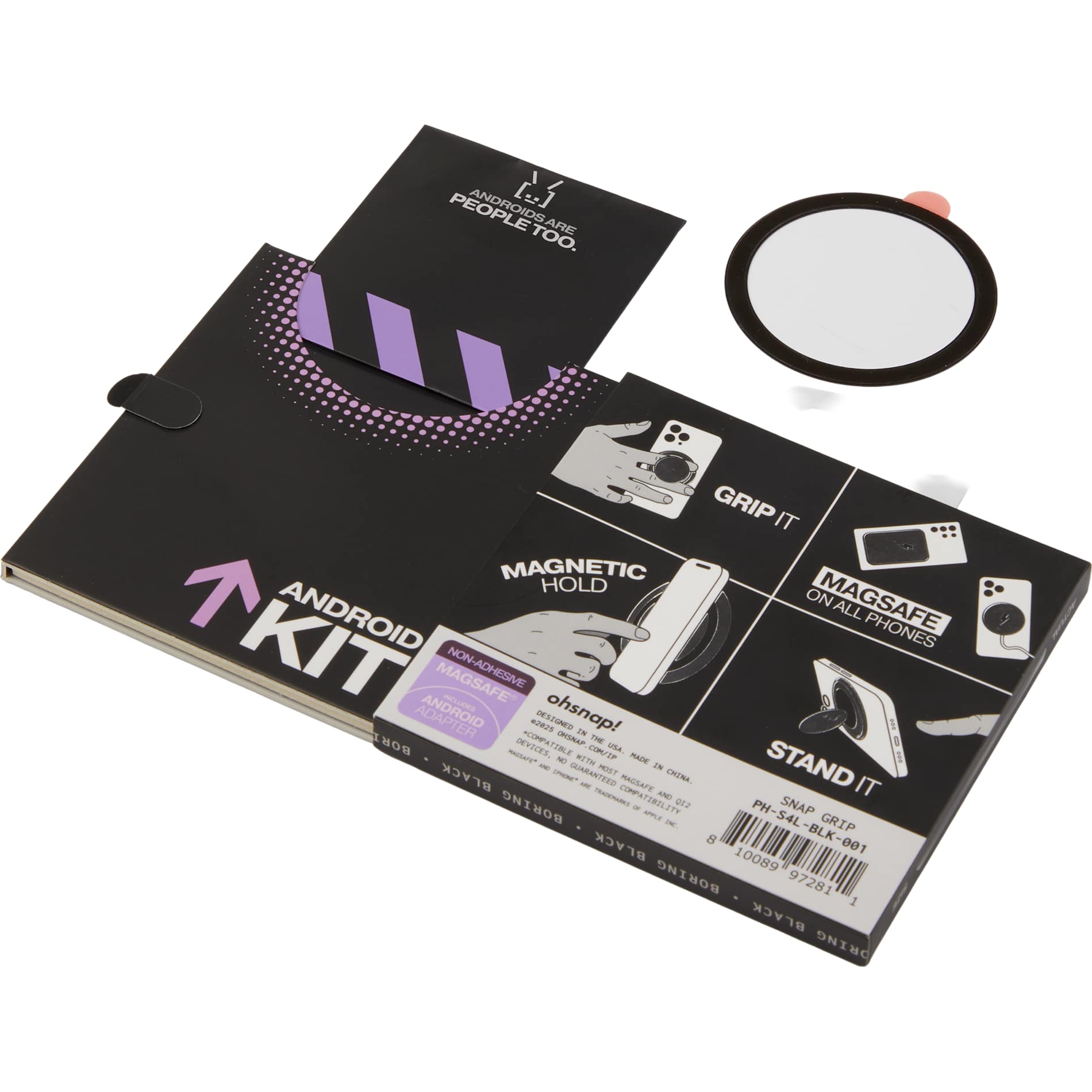 Grip it. Spin it. Kick it. Stick it. Swap it. Pocket. Use Snap Grip 5 as a one or two finger grip with full 360° rotation, kick it into a rock-solid stand, or snap it to anything metal. The glueless MagSafe® design makes swapping accessories effortless and, at just 3mm thin, it slides into your pocket without a snag. Built with a sleek metal trim and includes an adapter for non-iPhones & cases.Snap Grip is compatible with almost every phone made in the last 15 years.