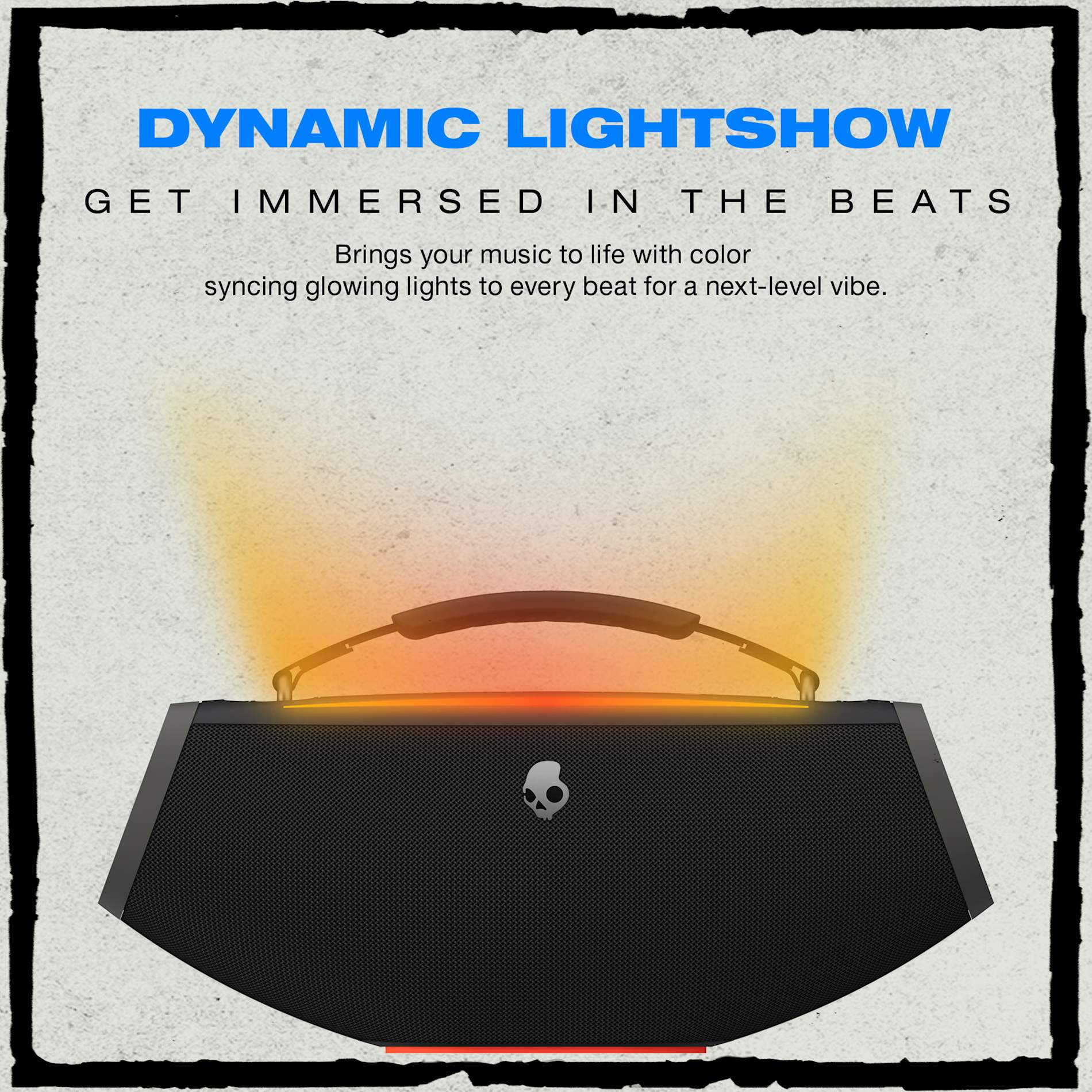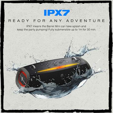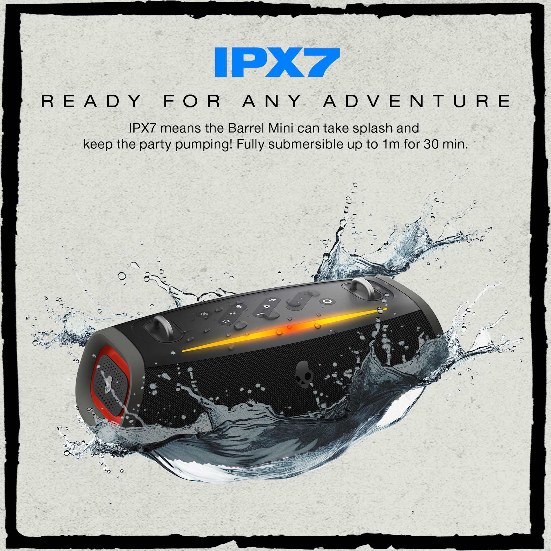 The Skullcandy Barrell Mini is the ultimate portable Bluetooth speaker. With built-in custom dual passive radiators, it will provide maximum bass for your audience. If the sound doesn’t get their attention, the LED Lights will mesmerize the crowd with a dazzling, dynamic light show. With up to 12 hours of playback time, you'll enjoy the audio from sunrise to sunset. With an IPX7 waterproof rating, the speaker is perfect for camping, traveling, and other outdoor adventures. The speaker includes three built-in microphones, music controls, and a 30W USB-C Power Bank. SKDY Multi-Link allows you to connect to 99 Skullcandy Multi-Link speakers.