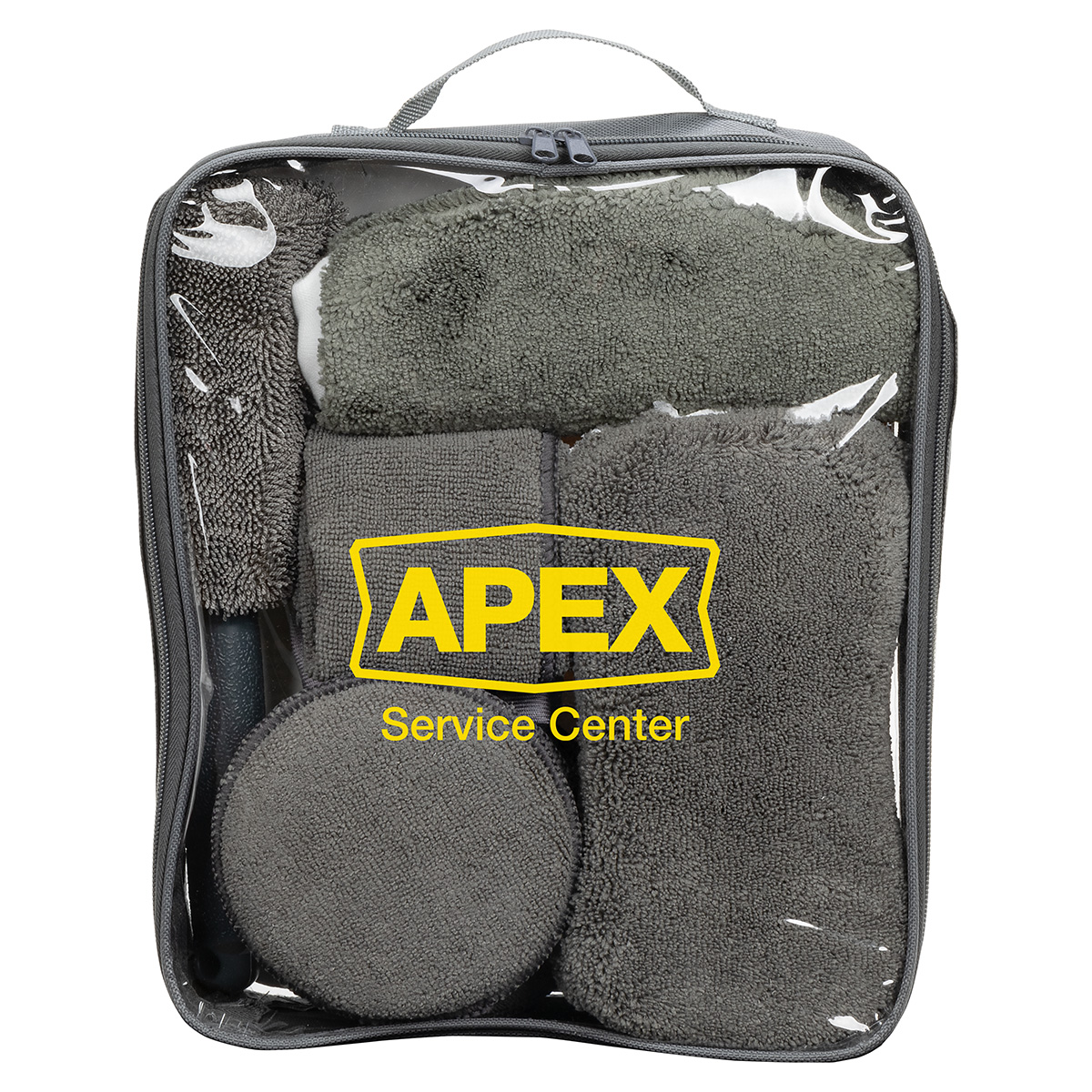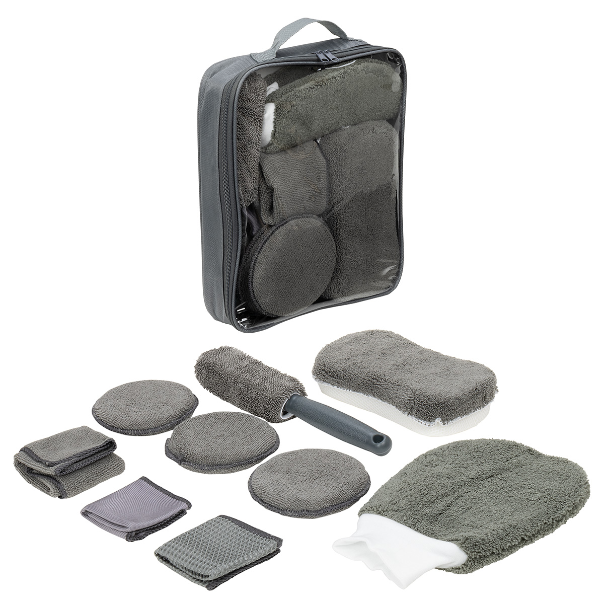 Keep your car spotless inside and out with the Pit Crew 9-Piece Car Wash Detailing Kit. This complete set includes microfiber cloths, applicator pads, a wash mitt, sponge, and tire brush for every cleaning task. Made with durable, absorbent materials, it removes dirt and grime with ease. Packaged in a convenient PVC + Oxford pouch, it’s perfect for car enthusiasts, at-home care, or professional auto shops.