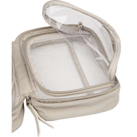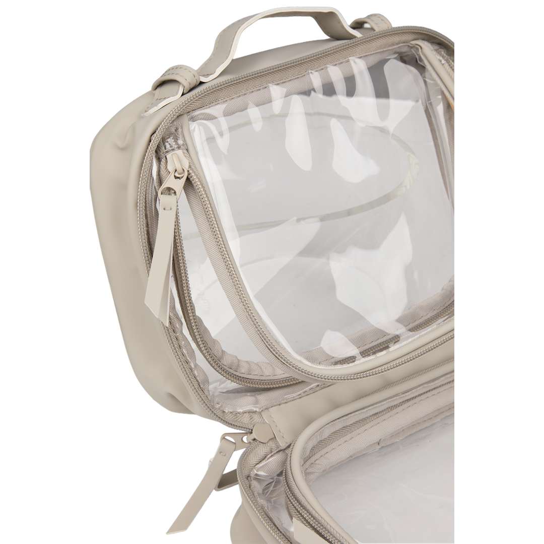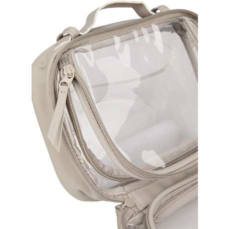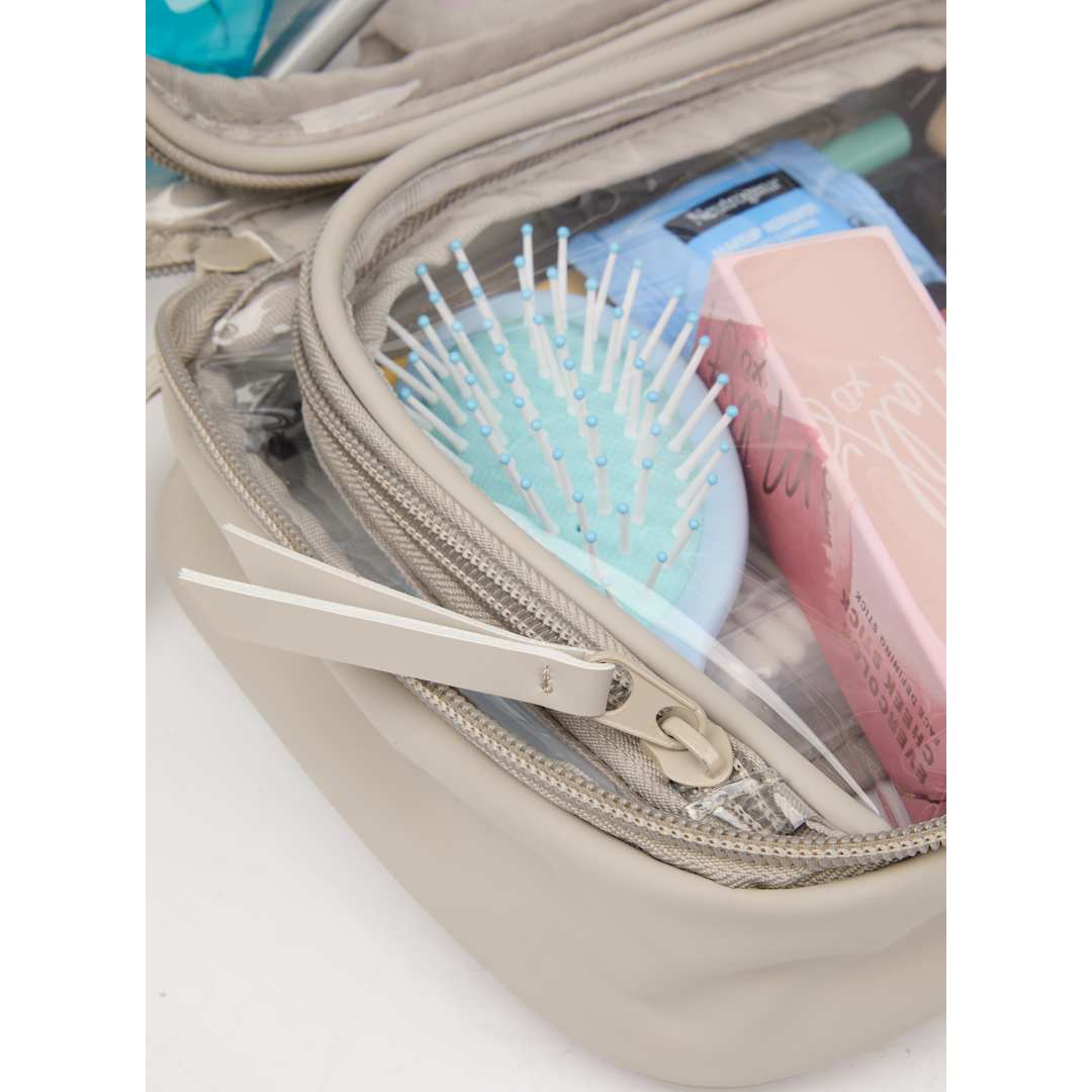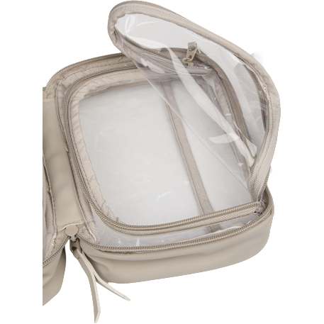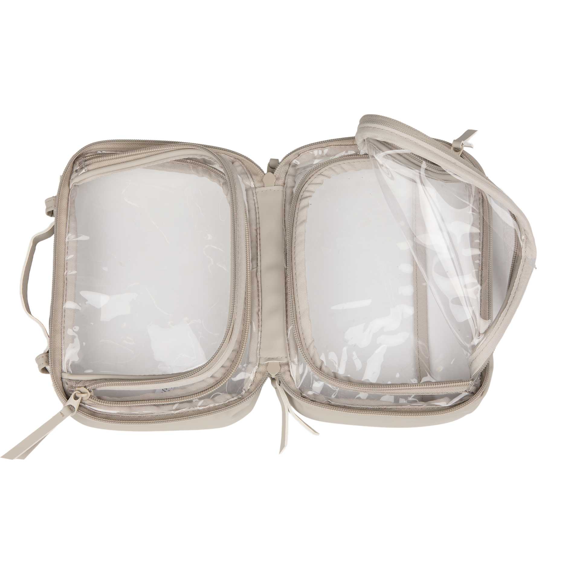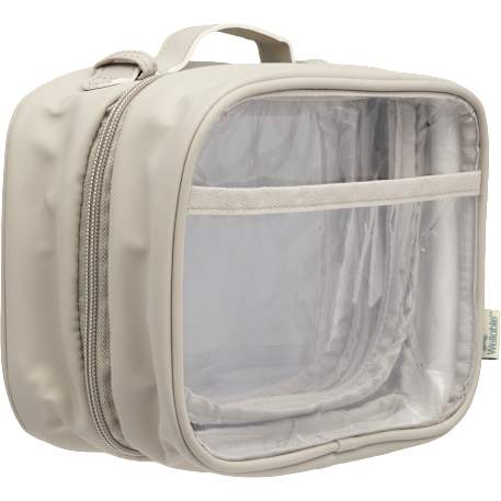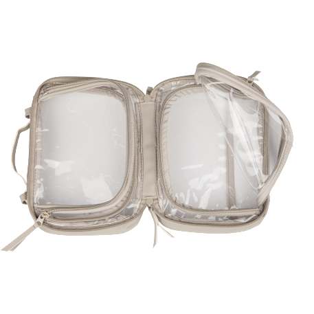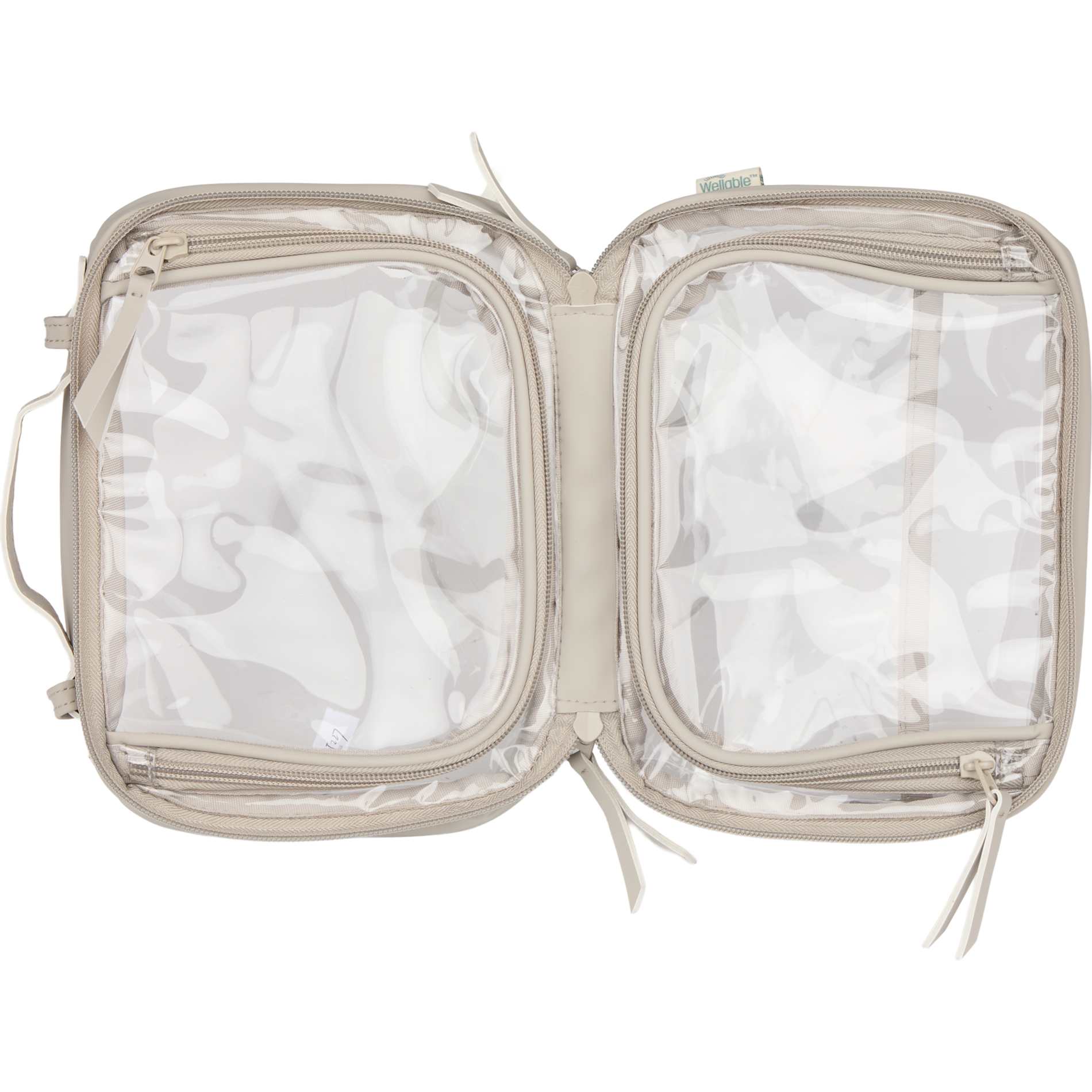 The Wellable clear travel case is your next trip essential. It has a front pocket to hold your small essentials and a top grab handle for easy access. The two zippered pockets allow you to store your toiletries for your next trip.