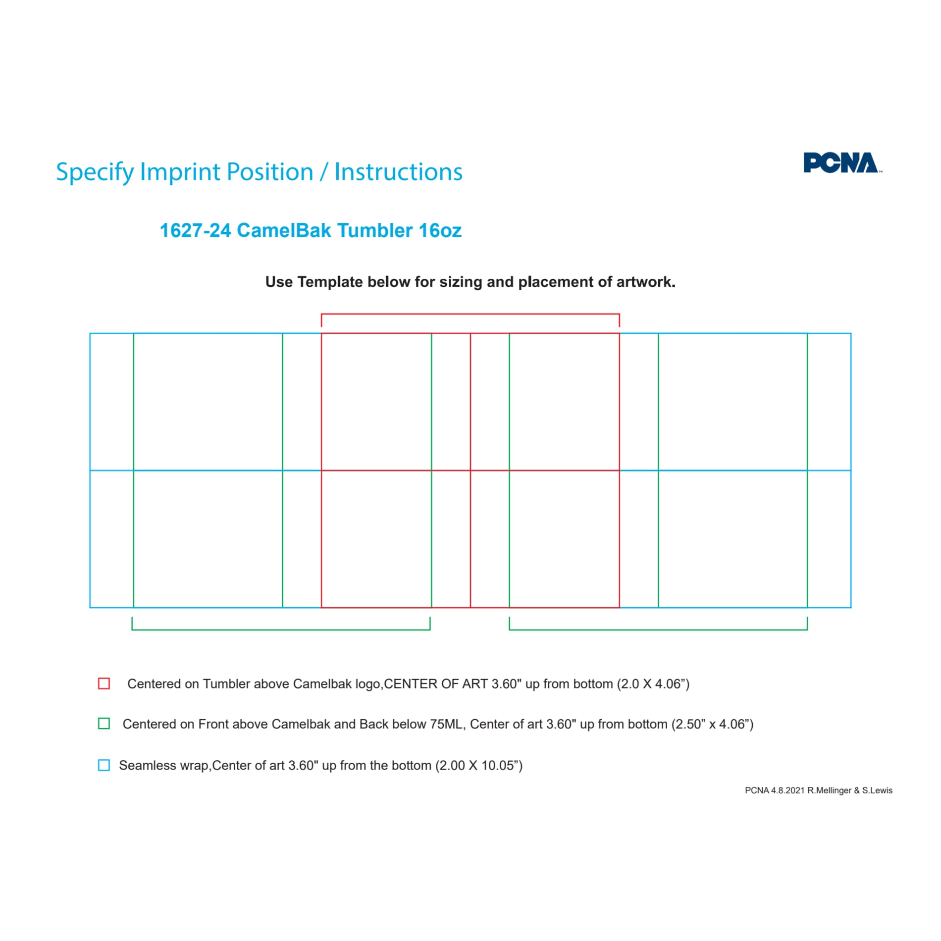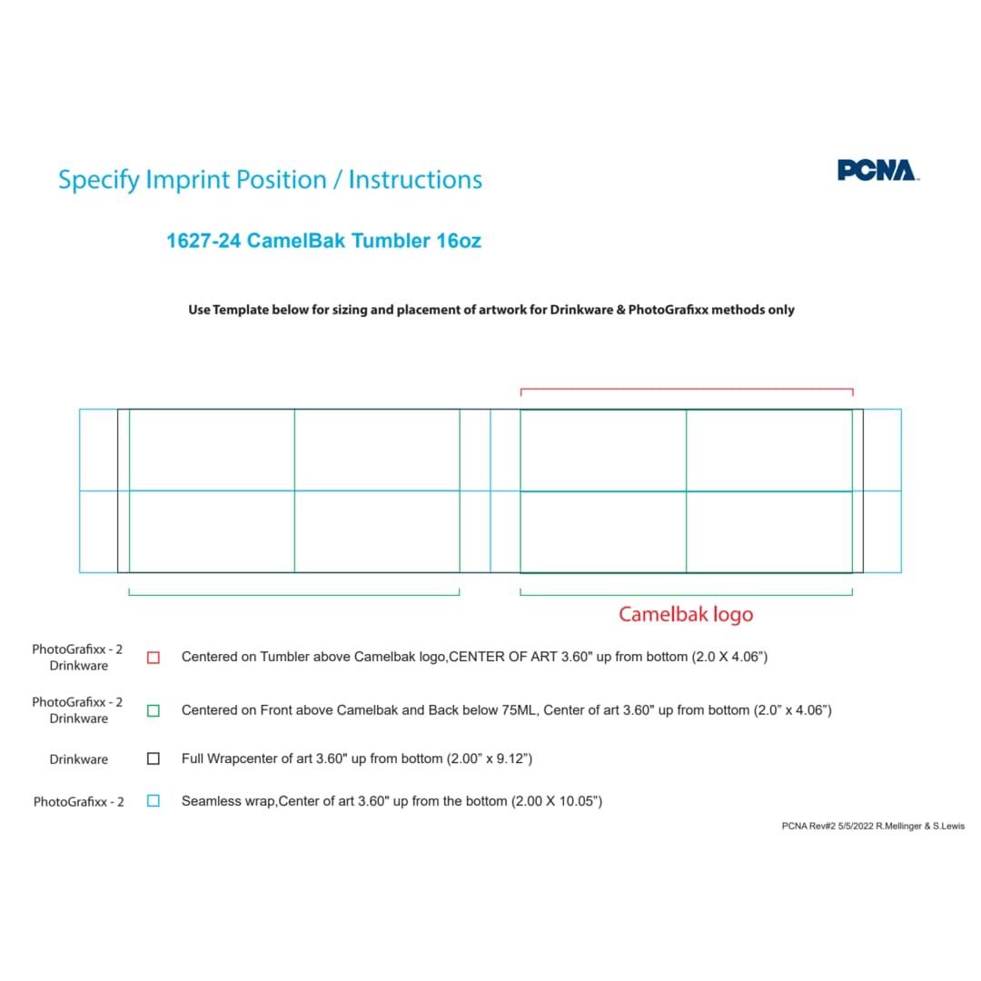 Centered on Tumbler Opposite Camelbak logo, - center of art 3.60Color Print SilkScreen - DrinkwareCharge Name:SETUP SINGLE COLOR