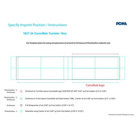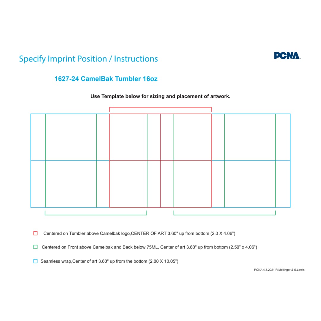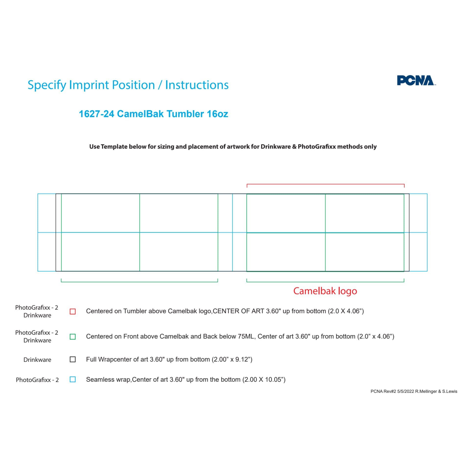 Centered on Tumbler Opposite Camelbak logo, - center of art 3.60Digital Color PrintCharge Name:SETUP SINGLE COLOR