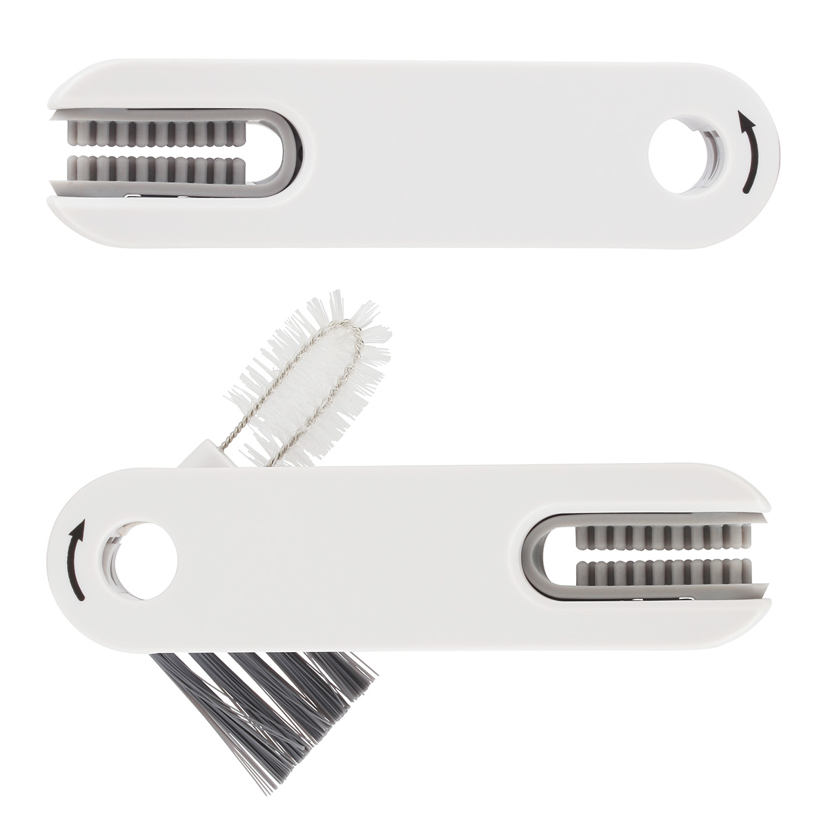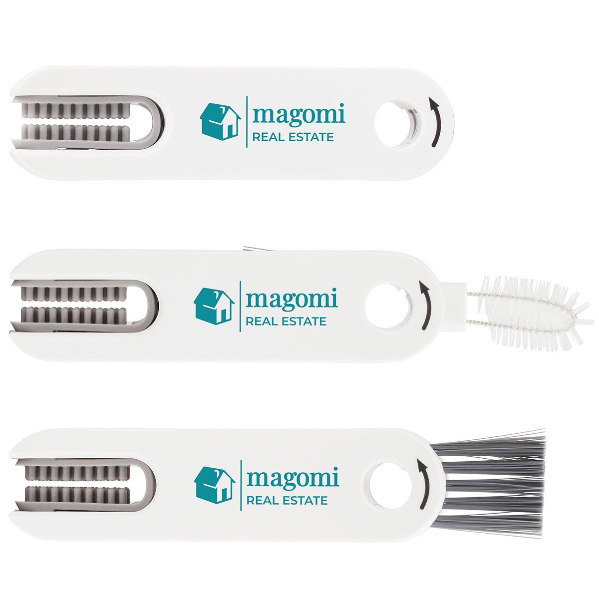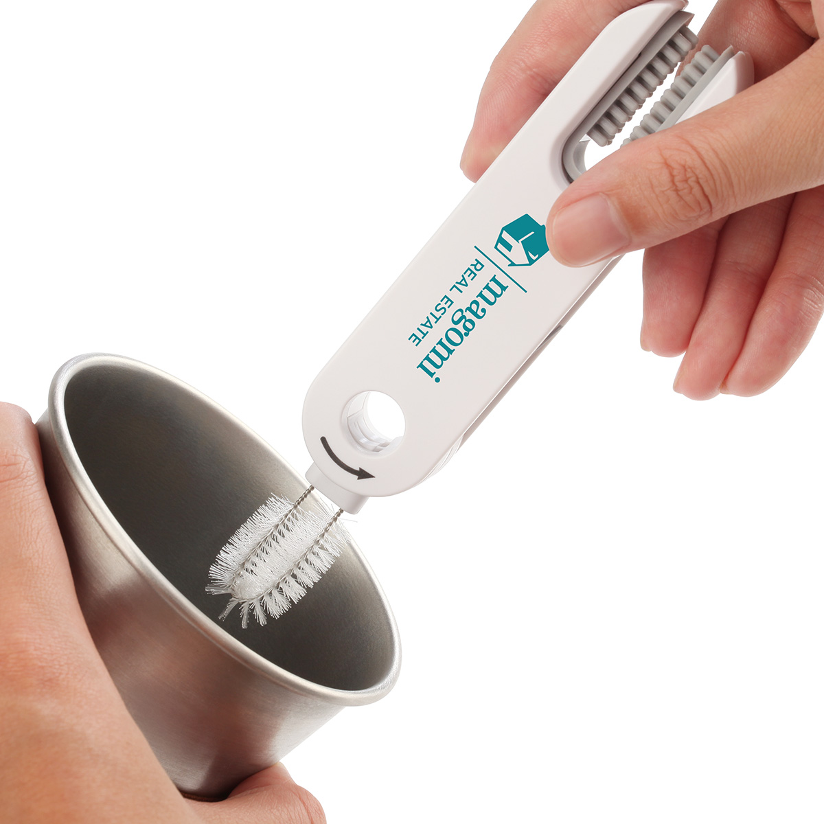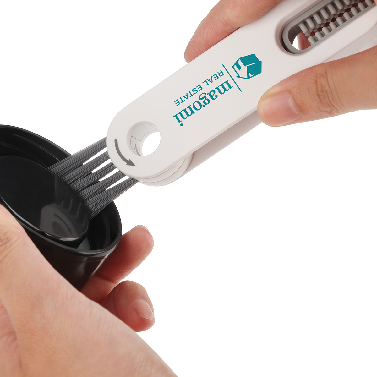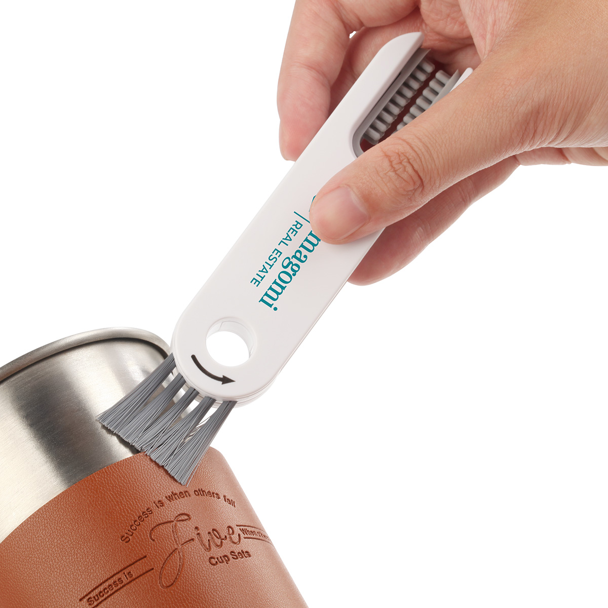 Tackle every co er and crevice with the 3-in-1 Multifunctional Cleaning Brush. Featuring a U-shaped head for cup rims, a gap brush for grooves, and a co er brush for tight spots, this compact tool is perfect for cleaning bottles, lids, and more. Made from heat-resistant polypropylene (up to 176 degrees F), it's durable, washable, and easy to store with its built-in hanging hole—ideal for home, kitchen, or drinkware promos.