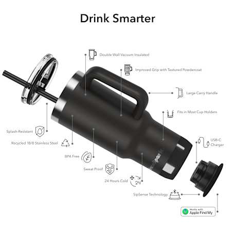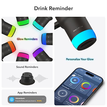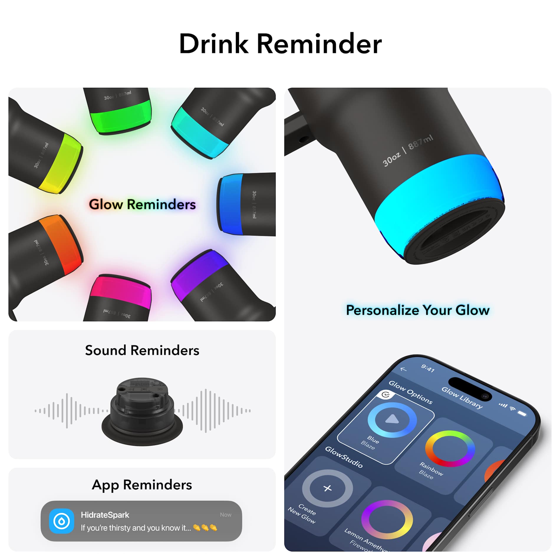 Stay hydrated like never before with the 30 oz HidrateSpark PRO 2, the world’s smartest tumbler made from premium recycled stainless steel. Double-wall vacuum insulation keeps your drink cold for up to 24 hours, or hot for 4 hours, while the PRO 2 sensor with SipSense technology tracks every sip and reminds you when it’s time to drink with a customizable 360-degree glow and optional sound alerts. Sync your water intake with the HidrateSpark App via Bluetooth to monitor your progress, set personalized goals, and even locate your bottle using Apple’s Find My Network. The ergonomic handle and narrow base make it cup-holder friendly and easy to carry wherever you go. Choose your perfect drinking style with the versatile press-in lid featuring a secure straw seal or a drink opening, perfect for splash-free travel.