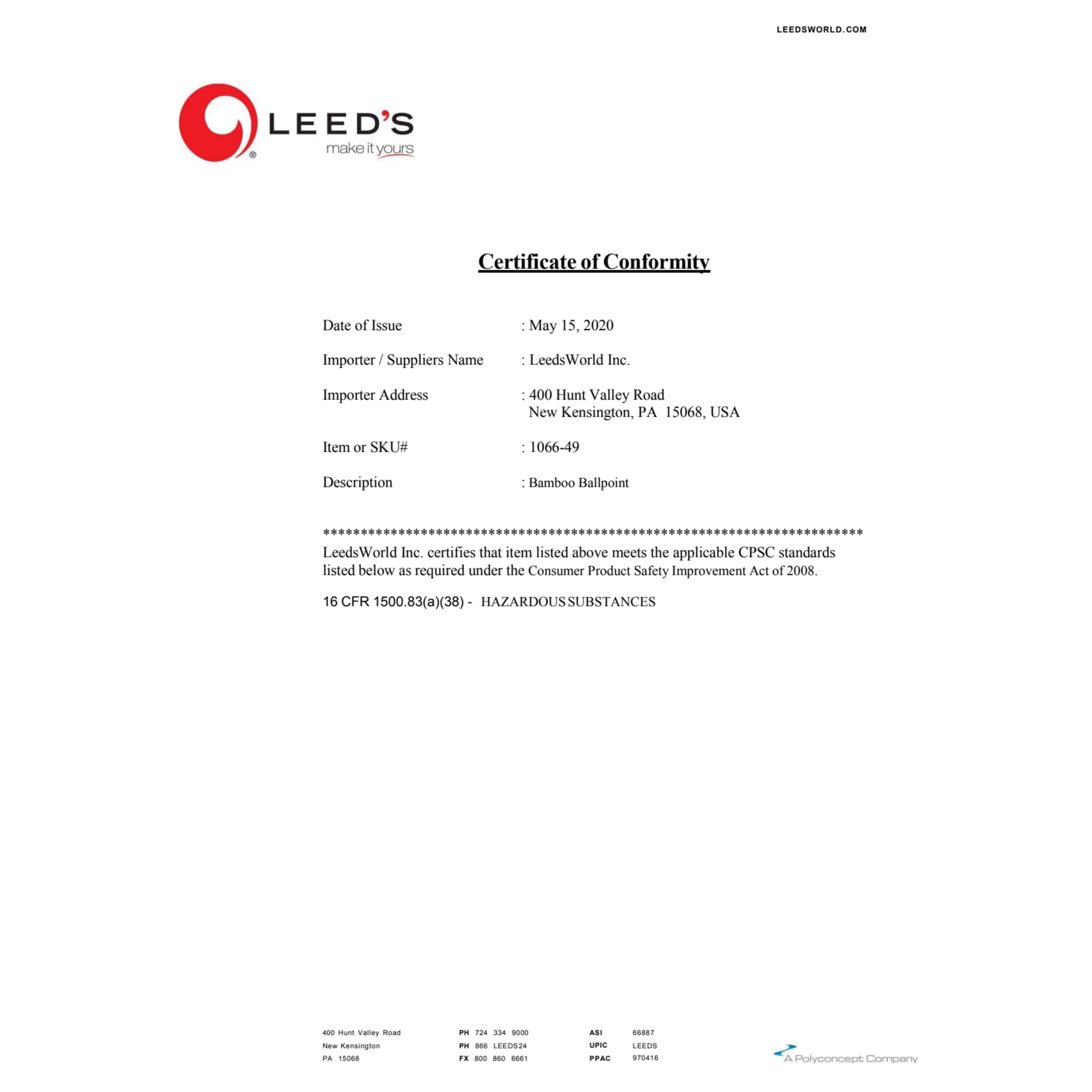 The Bamboo Ballpoint features a 100% bamboo barrel with gunmetal accents. Equipped with ultra-smooth, quick dry semi-gel black ink cartridge. Click action mechanism. Pen tip is 1 mm. Writing length is 800m. Laser finish is light to dark brown wood bu ed appearance.