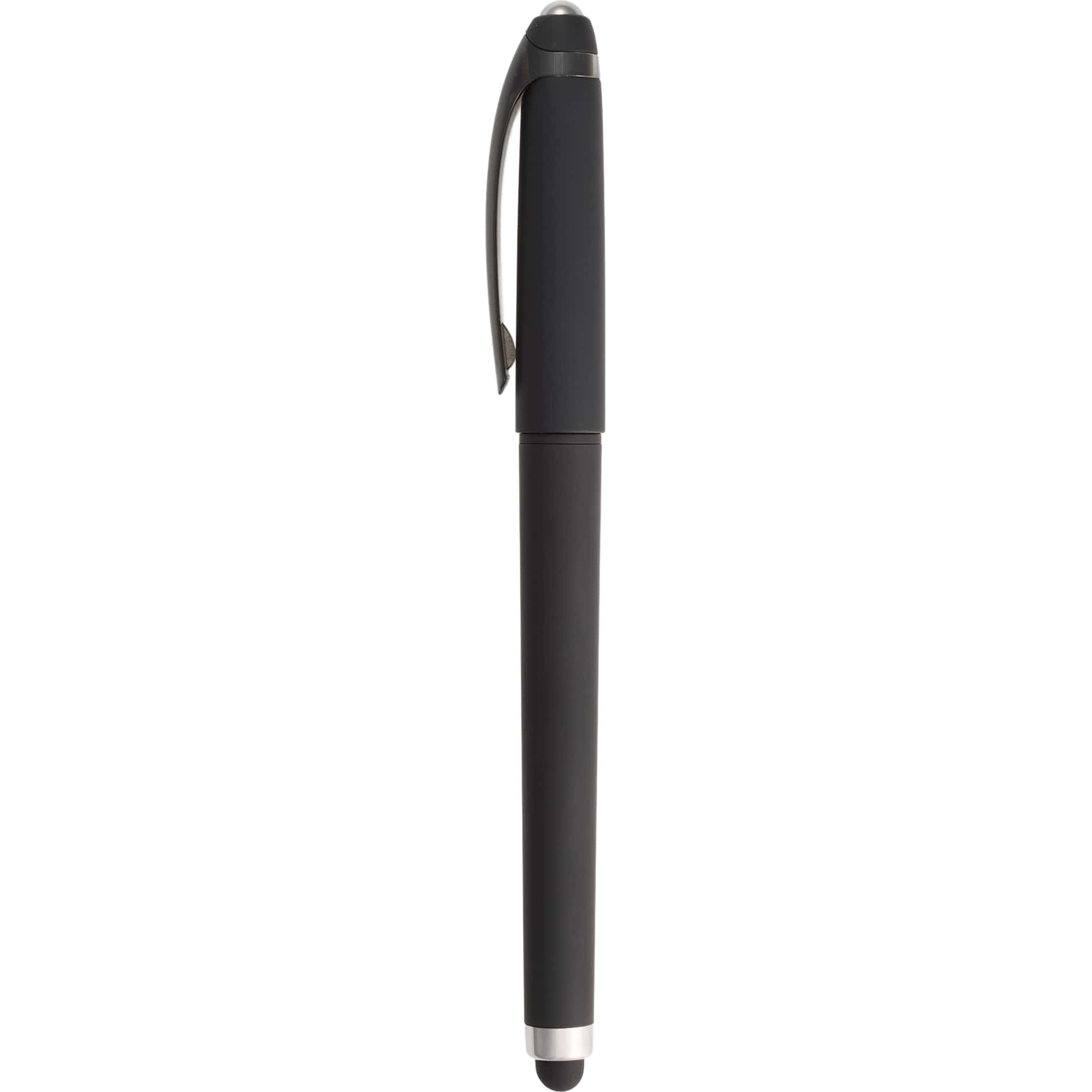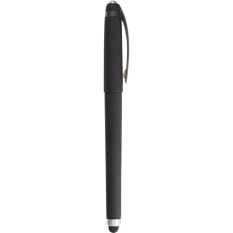 The Rovio Recycled Fidget Stylus Pen blends focus with function. Its recycled ABS barrel houses a 0.7 mm tip which delivers 300m of smooth black gel ink and a tactile cap-off rolling fidget ball to relieve stress during meetings or study sessions. A built-in stylus keeps your device navigation seamless — perfect for desk work and mobile note-taking. By choosing this pen, you're making a positive impact on the environment, as one percent of sales are donated to environmental nonprofits through a partnership with 1% For The Planet.