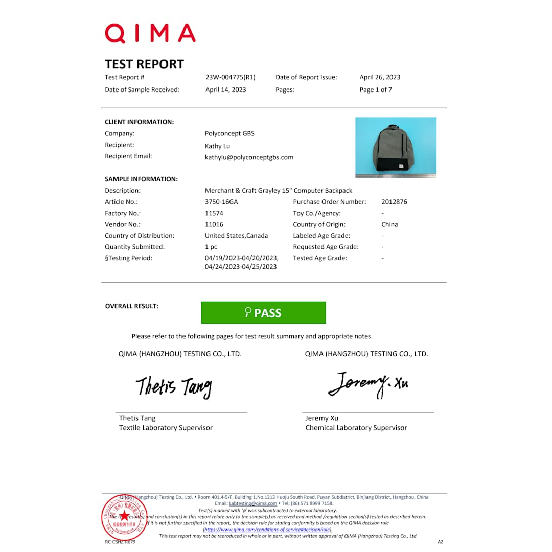 The Merchant & Craft Grayley 15" Computer Backpack is a simple classic for your mode lifestyle. The zippered main compartment contains a 15 inch laptop sleeve, while the vertical front zipper provides easy access to your essentials. Disclaimer: There may be minor variations in color of the actual product due to the nature of the fabric dyes, weaves and printing.