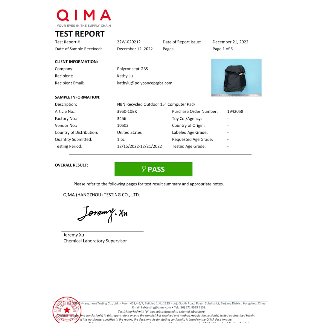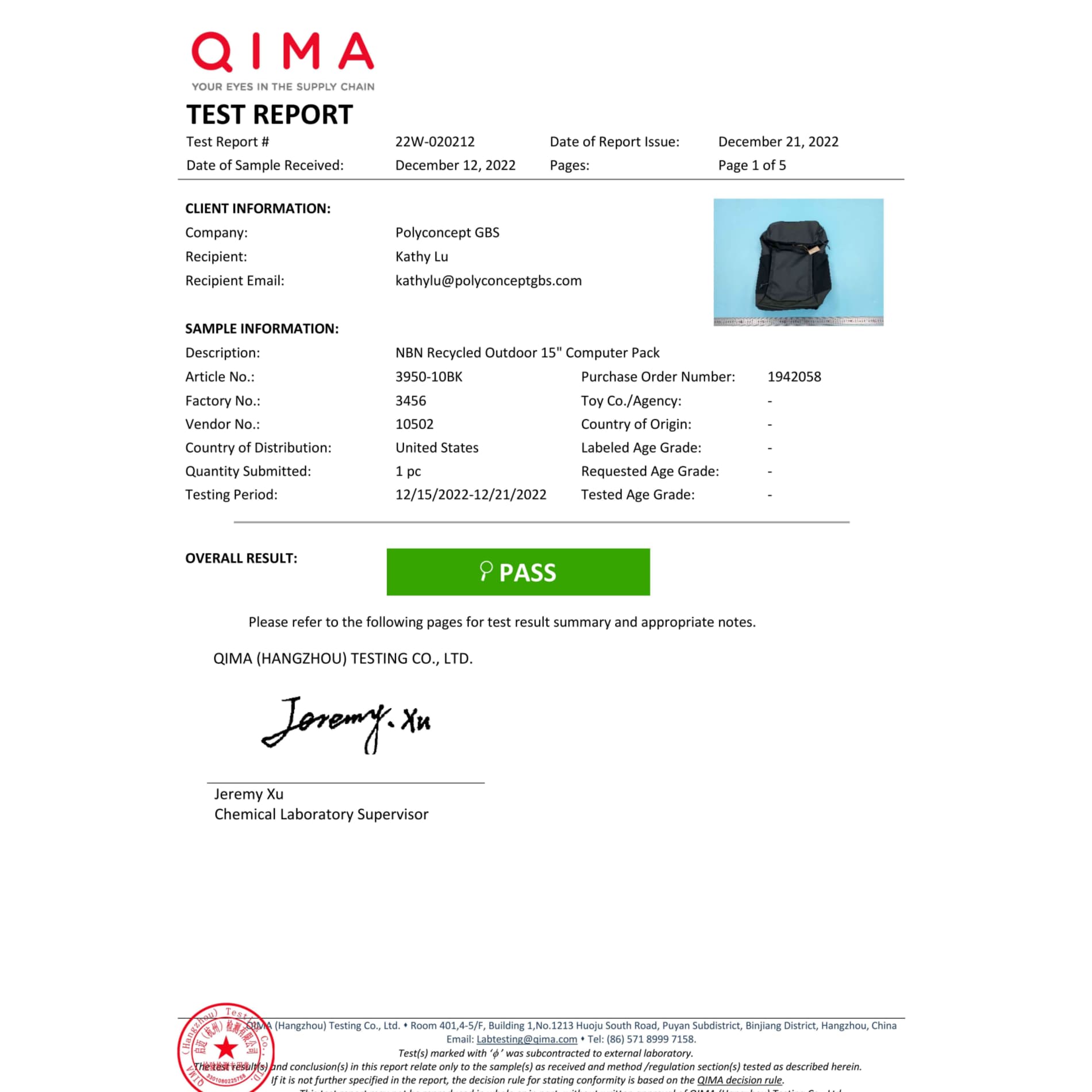 The NBN Recycled Outdoor 15" Computer Pack is designed to go anywhere you do. It features a U-shaped zippered main compartment with a padded laptop sleeve and two large zippered mesh pockets. Stay organized using the included accessory pouch, the zippered top pocket and the zippered front pocket with key ring. Two side mesh water bottle pockets ensure you'll be able to pack enough water for an adventure. Through a partnership with 1% For The Planet, one percent of sales of all EcoSmart® products will be donated to nonprofits dedicated to protecting the planet.