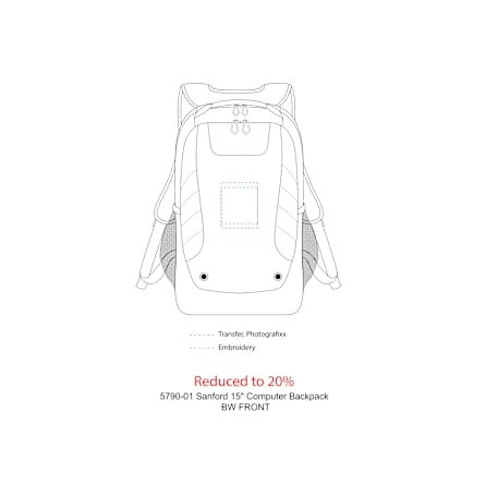 The Sanford 15" Computer Backpack features a zippered main compartment that holds up to 15 inch laptop. A mesh slash pocket on interior wall to hold all of your tech accessories, while the large zippered front compartment offers a deluxe organizational panel. The front panel is accented with grommet and stitched details. Comes with a side mesh water bottle pocket, a webbing grab handle and trolley sleeve, padded and adjustable shoulder straps and custom designed zippered pullers.