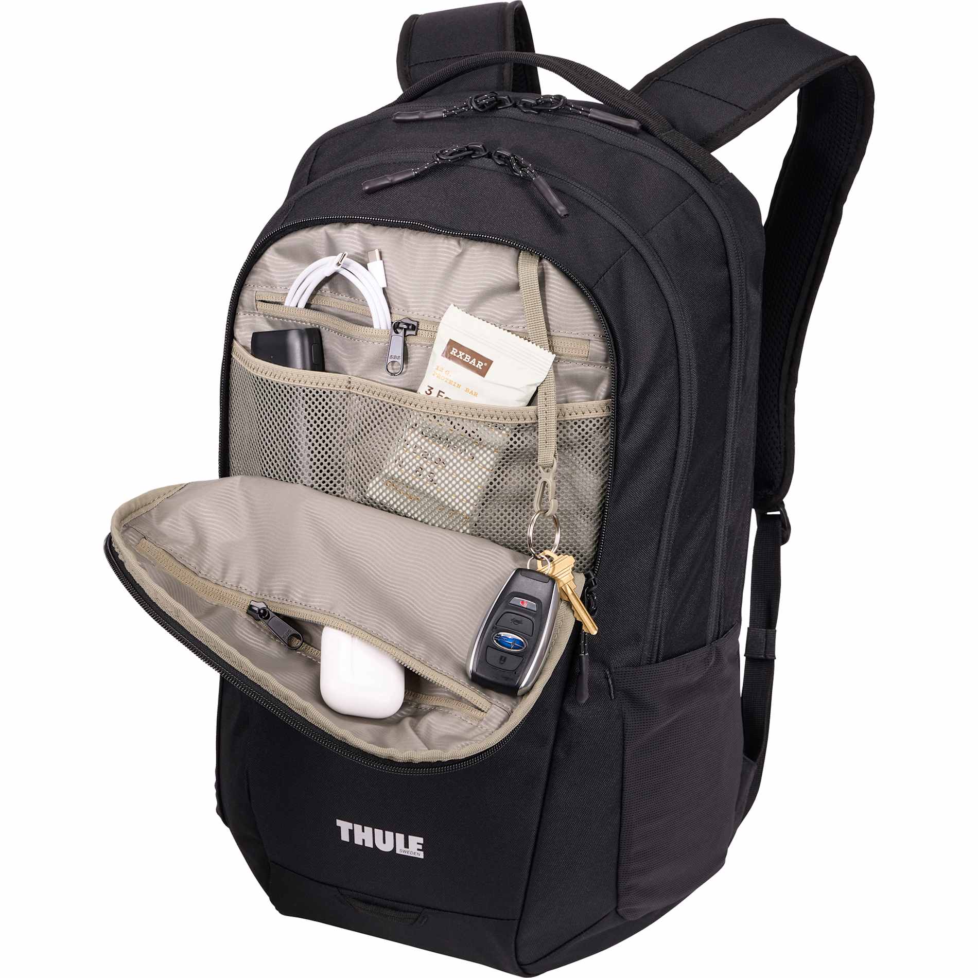 Exclusively designed for PCNA, the Thule Lumion 28L Backpack combines mode style with smart functionality. Crafted from recycled polyester, it features three zippered compartments to keep your gear organized. The front pocket includes dedicated organization for chargers, small electronics, and a key fob for quick access, while the second compartment provides ample space for larger items. A padded compartment protects your laptop and tablet, and a trolley sleeve adds convenience for travel
