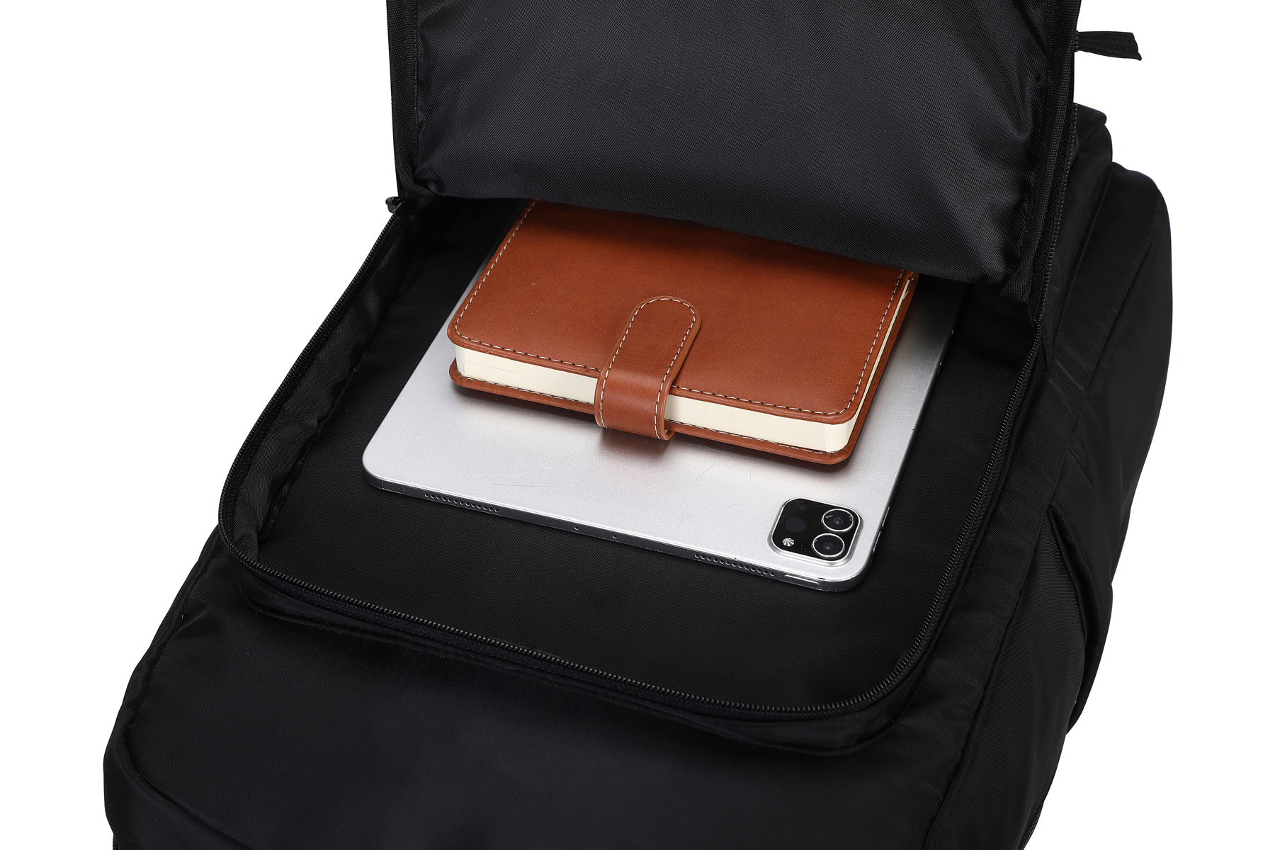 Experience your travel convenience with our Niro Twill Polyester Backpack, a durable backpack made from 330D Twill Polyester, featuring a padded shock-absorbent main compartment. With two front zippered pockets and two side gusset pockets, you’ll have ample space for bottles, phones, or other essentials. The adjustable padded shoulder straps ensure comfort on the go, while the back panel loop keeps the bag secure on rolling luggage. Complete with a sturdy carrying loop, this bag is perfect for adventurers and commuters alike!
