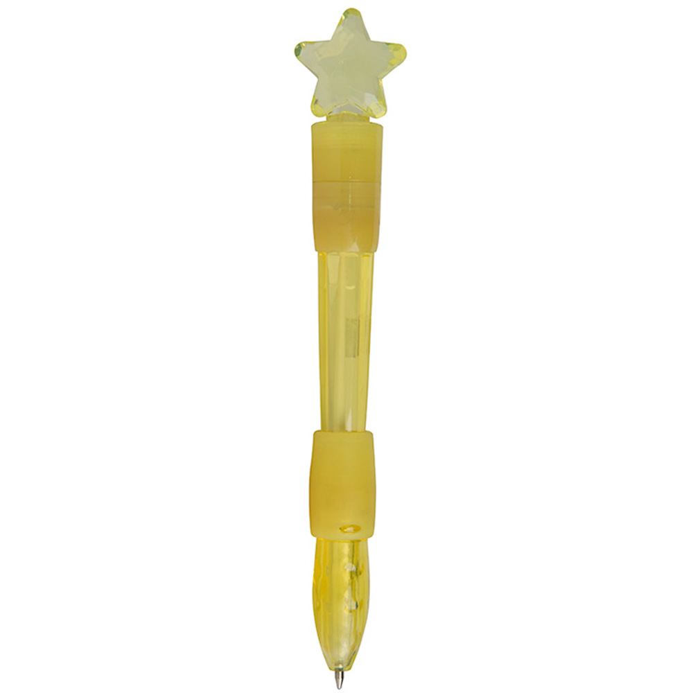 Illuminate your brand with our light-up ballpoint pen, featuring a charming miniature star topper. Measuring 6" x 1", this pen has ample room for customization; add a brand name, logo or message. Your clients will adore this unique and fun gift! Simply twist to tu on or off. This product is not intended for use by children or pets. It may present a choking hazard to children under 3 years of age. Previously known as Item #2432625, Old Suplier Item No: 2432625