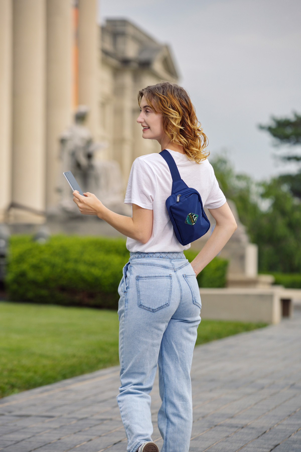 The AeroLOFT® Anywhere Belt Bag larger version of the original belt bag, a unisex, multi-functional bag designed for an active, on-the-go lifestyle. Constructed of water-resistant 290T polyester fabric, it features an easy-access zippered main compartment with 2 inside mesh pockets and a backside zippered side stash pocket. The sleek, compact design is perfect for phone, keys, and wallet, and can be wo as a cross-body, shoulder pack, fanny pack, or waist pack. Metallic grey performance polyester interior lining is water and puncture resistant. Contrast lining makes it brighter, easy to locate inside contents. Adjustable size belt strap with easy-snap buckle extends to 44”.
