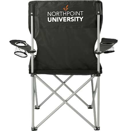 The Fanatic Event Folding Chair is a portable folding chair with an arm rest and built-in cup holders. Includes matching carry case with shoulder strap. This chair has a loading weight limit of 300 lbs. An imprint is available only on back of chair. Carry case not available for imprint.