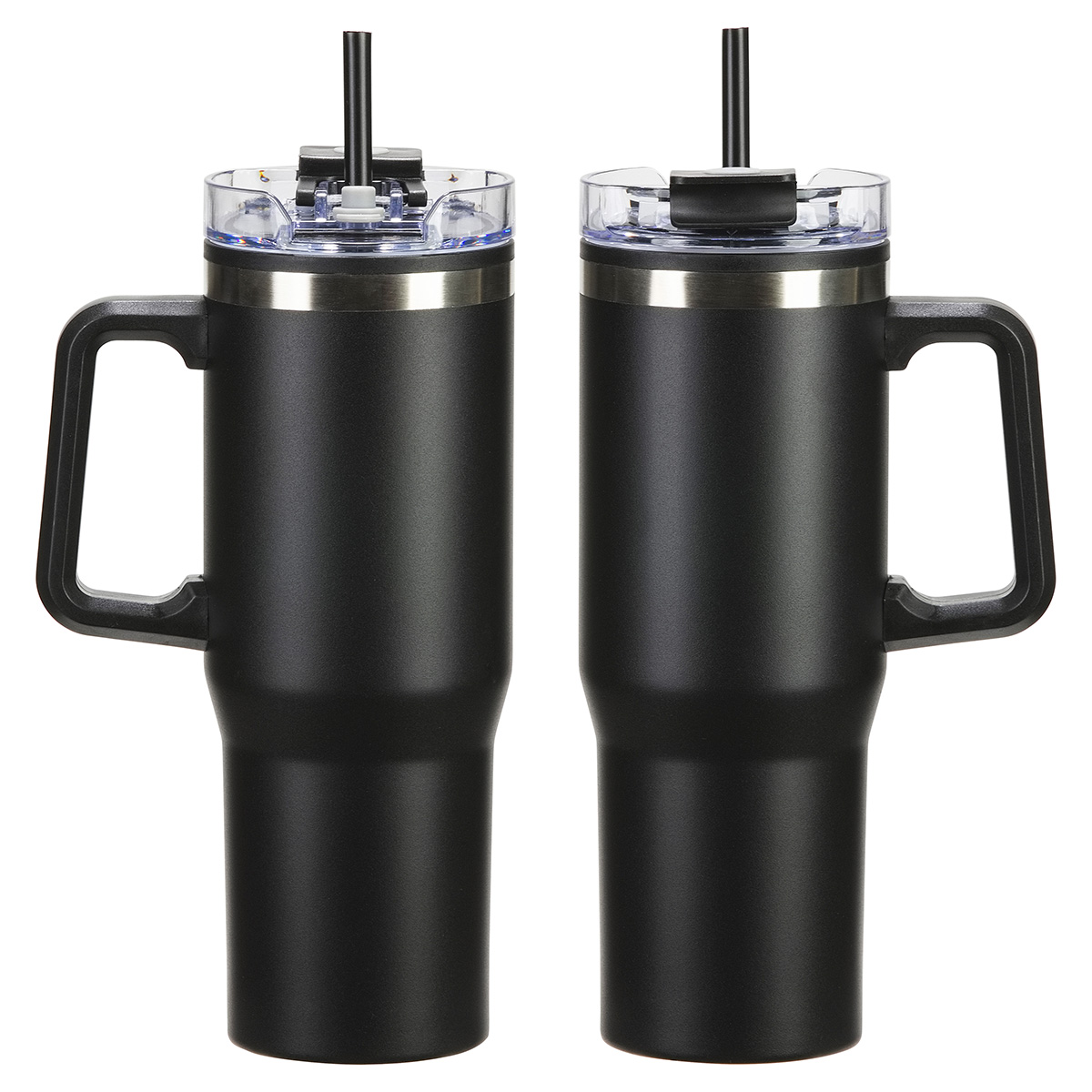 Experience ultimate hydration with our Oceanic 30 oz Stainless Steel/Polypropylene Mug with Color-Matching Handle, featuring a sleek stainless steel outer shell and a black polypropylene inner lining. The clear screw-on plastic lid includes a leak-resistant high wall, ensuring no spills. Designed with a color matched plastic handle for easy carrying, this mug keeps beverages hot or cold for up to 3 hours. It's BPA-free and FDA certified for safety, making it perfect for everyday use. Hand wash only to maintain its quality and performance.