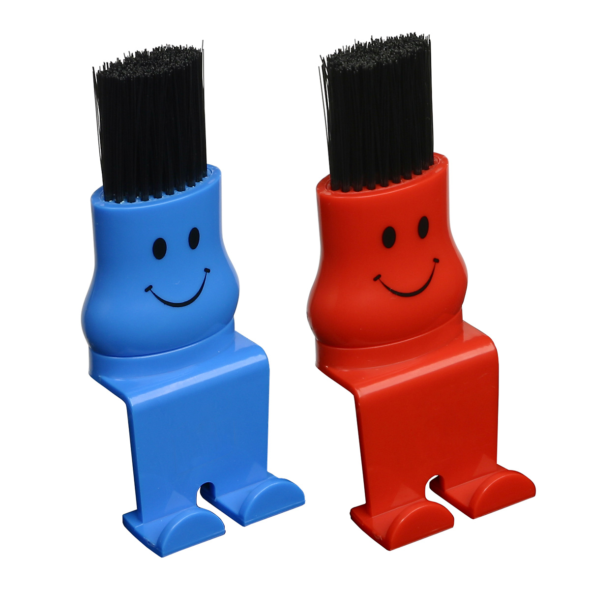 Adheres to computer monitor, Top detaches for cleaning computer surfaces, Soft, nylon non-static black brush, Feet hold pen or pencil, Includes pictured face