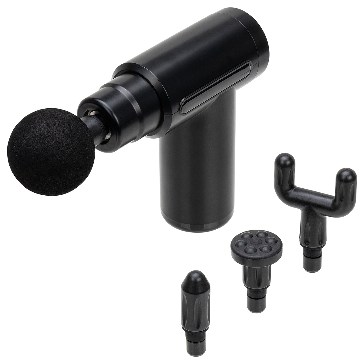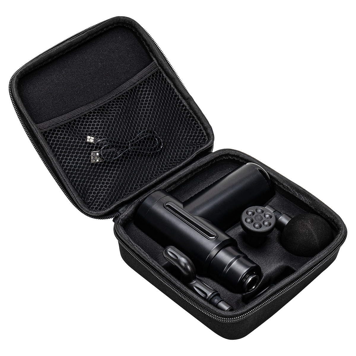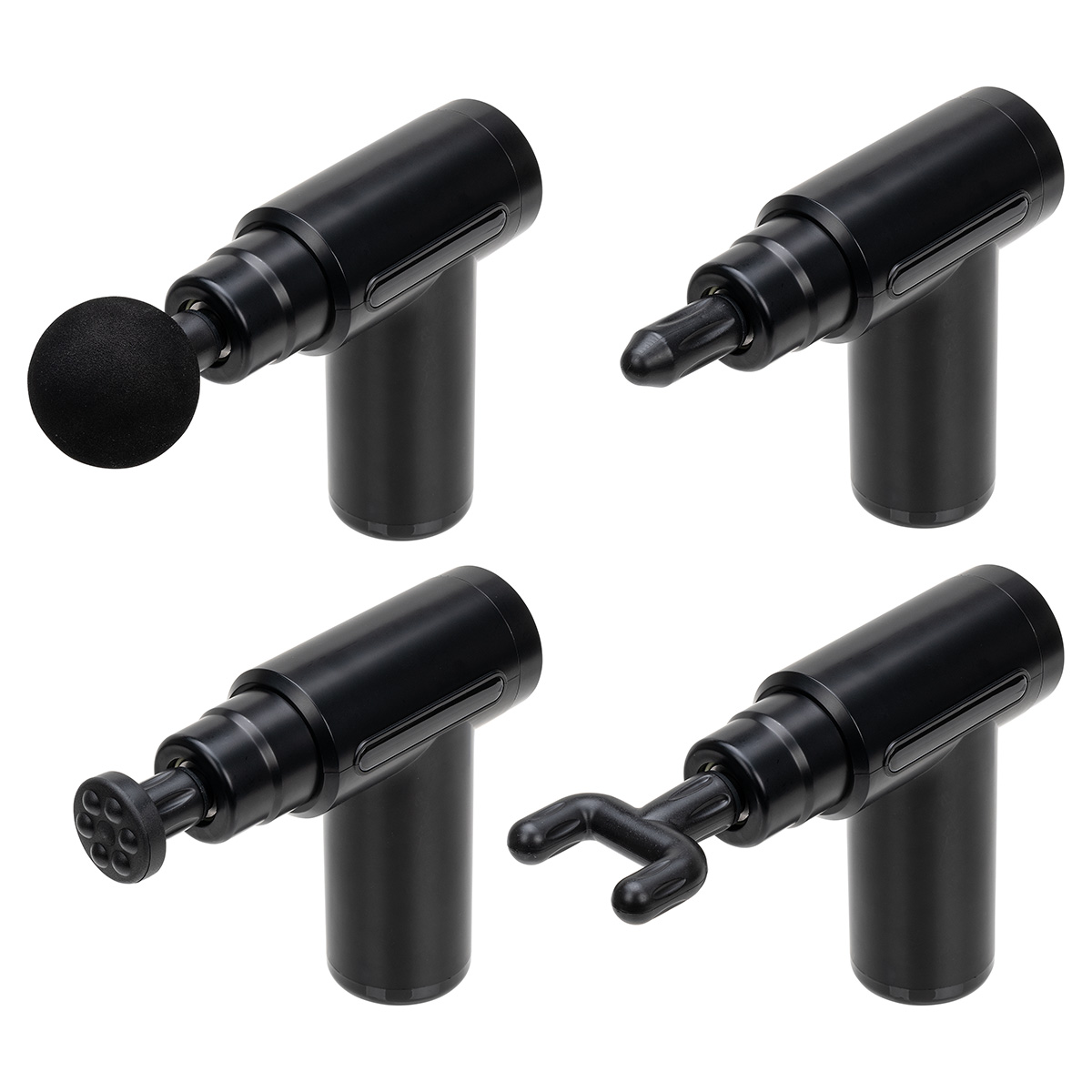 The Crimson Massage Gun features 4 interchangeable massage heads for targeted relief, including bullet, flat, fork, and ball heads. Powered by a quiet motor under 50dB, it offers 6 speed levels up to 3200rpm for customizable intensity. With a 6 mm stroke length and built-in 2400mAh lithium-ion battery, it ensures powerful performance. Includes USB-C charging cable and a fabric zipper pouch for easy portability. Equipped with a 10 minute auto-off for safety.