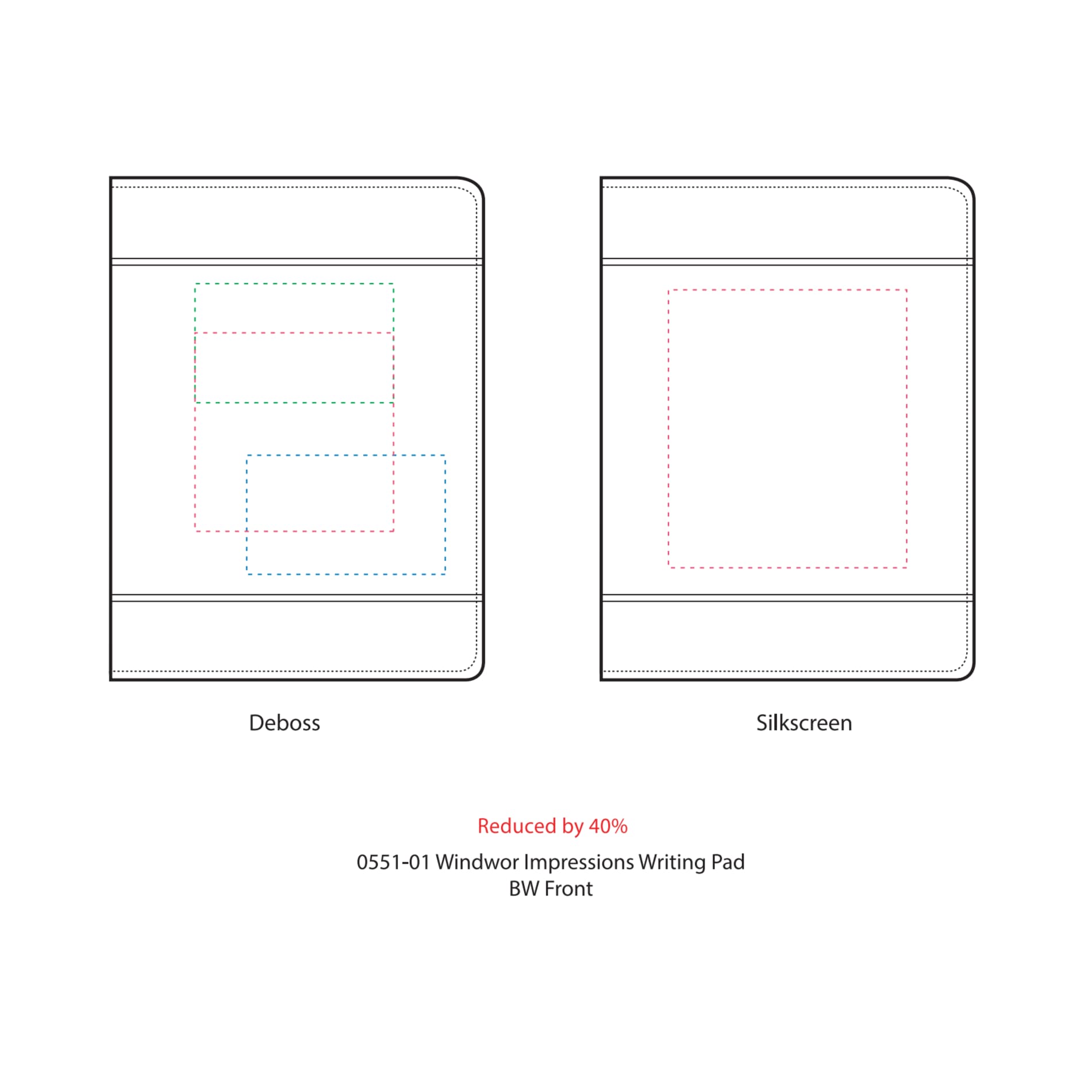 Record your thoughts, take notes, make to-do lists, and more using the Windsor Impressions Writing Pad with FSC® Mix Paper. It features a pocket for storing your documents, multiple pockets for business cards, and a convenient elastic pen loop. This item comes with an 11" H x 8.5" W writing pad with 30 sheets of FSC® Mix white lined paper. Pens are available to order separately.