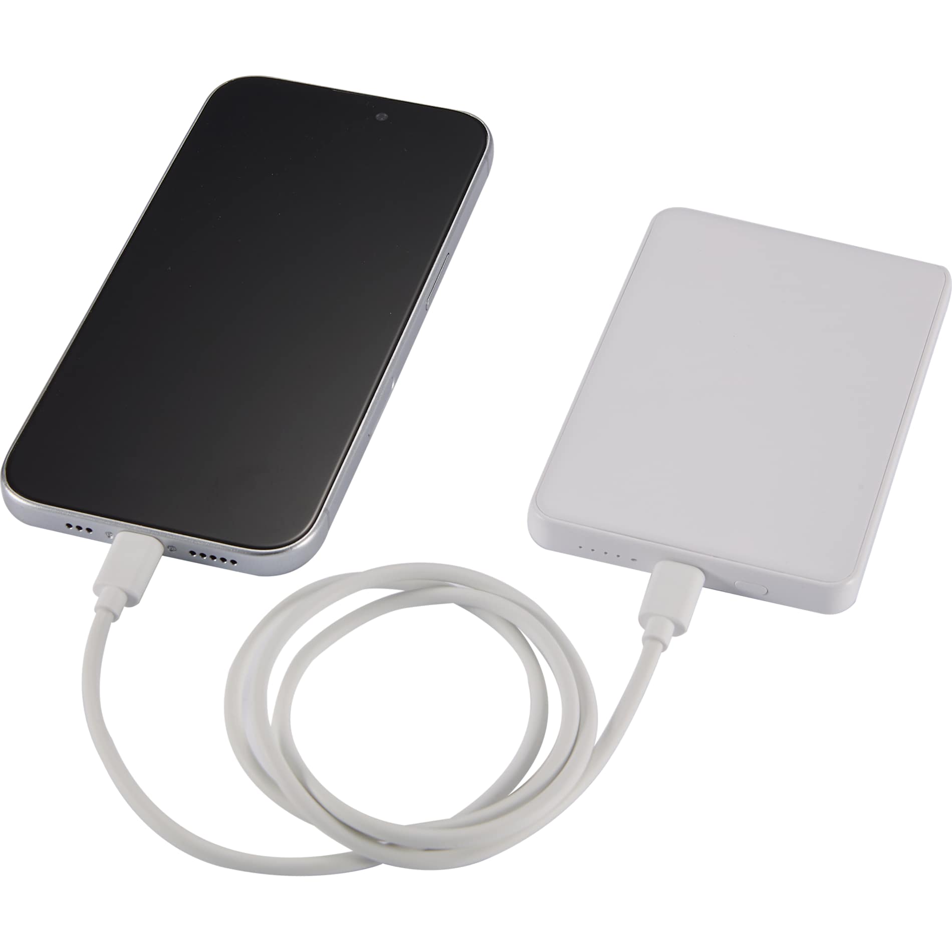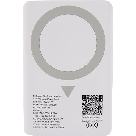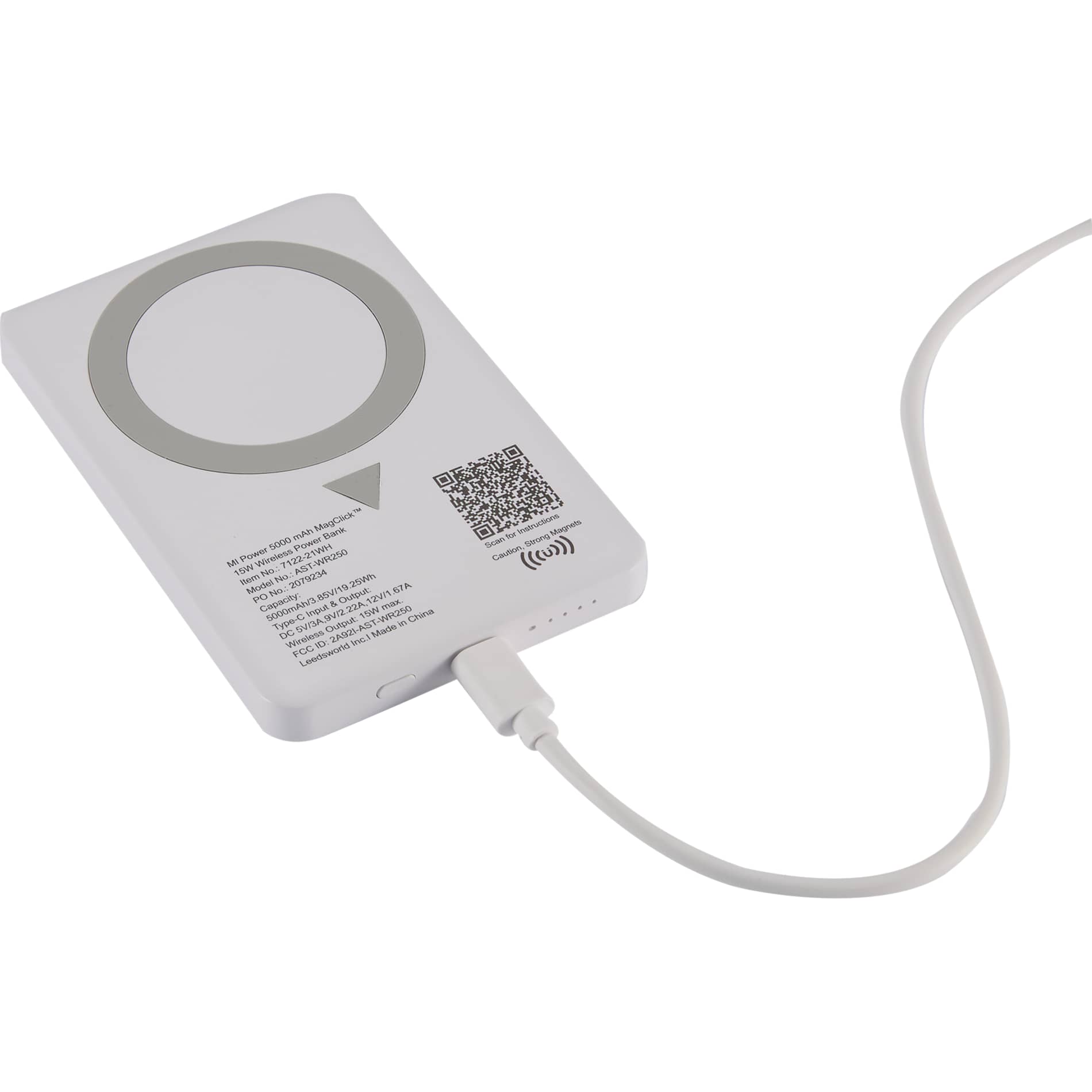 The MI Power 5000 mAh MagClick™ 15W Wireless Power Bank features a 5,000 mAh/19.25Wh rechargeable lithium polymer battery that works as both a wireless charging pad and a regular power bank. MagClick™ technology allows it to magnetically attach to iPhone 12–16 models, and it delivers seamless wireless charging (up to 15W for Android and 7.5W for iOS). Type-C Input/Output Port: 5V/3A, 9V/2.22A, 12V/1.67A (20W max); Comes with a 31-inch Type-C-to-Type-C charging cable. Note: power banks are permitted in carry-on luggage only, and at the discretion of TSA agents. Charge before initial use.