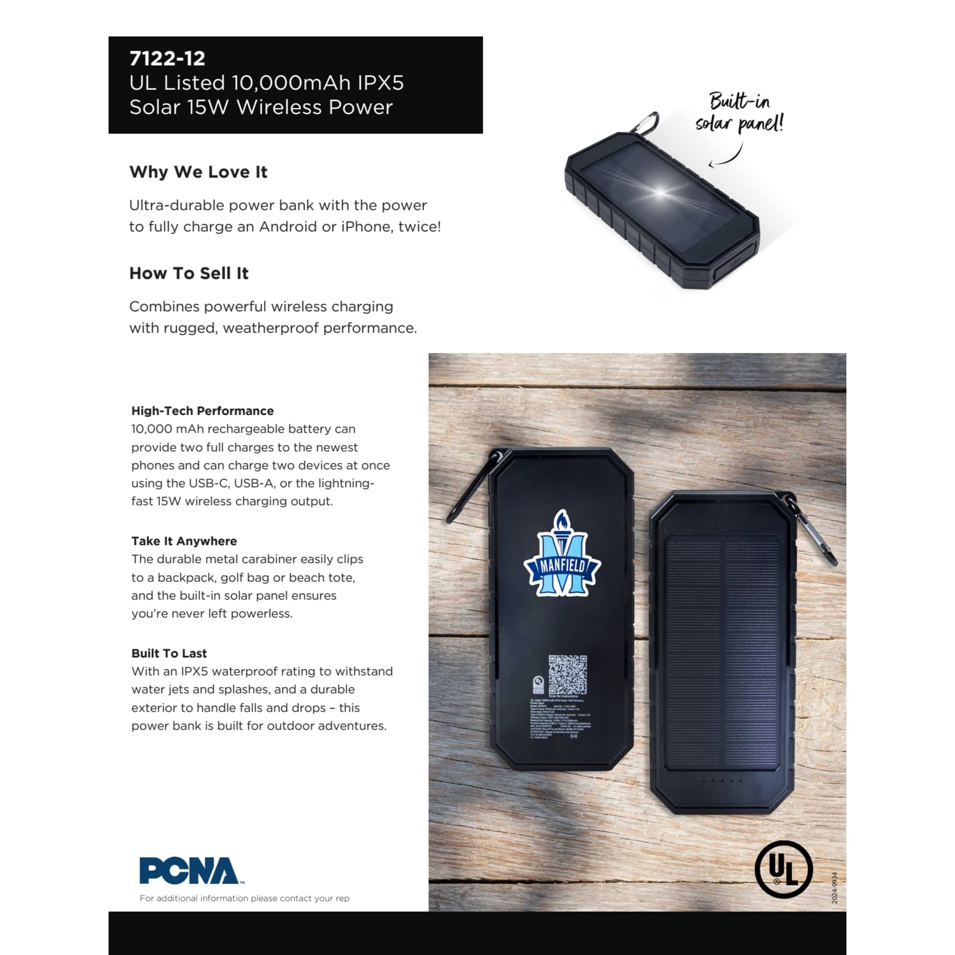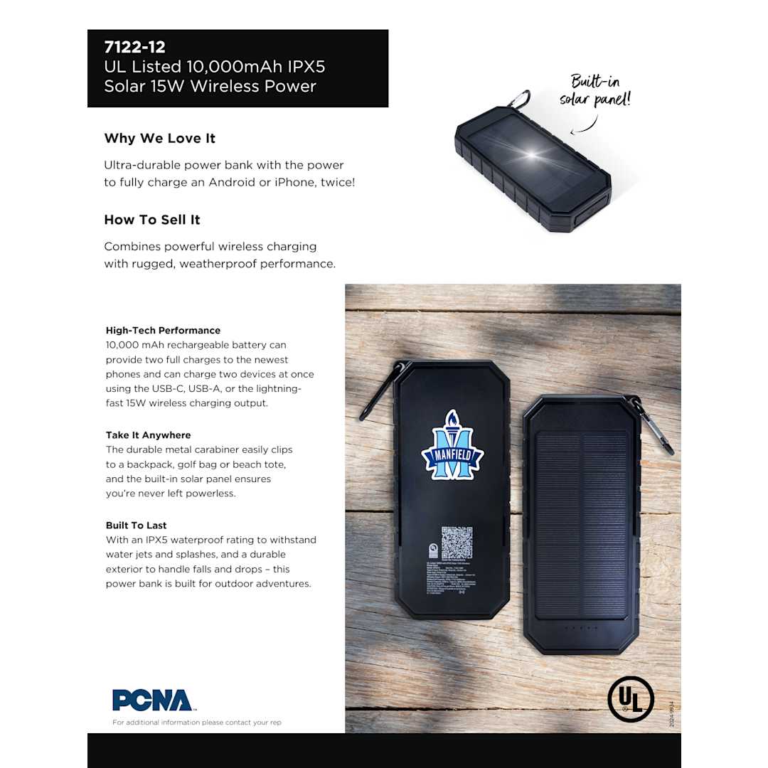 Ul Listed 10000 Ipx5 Solar 15w Wireless Power Ban  |  Item 7122-12