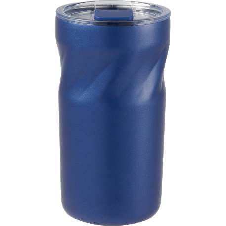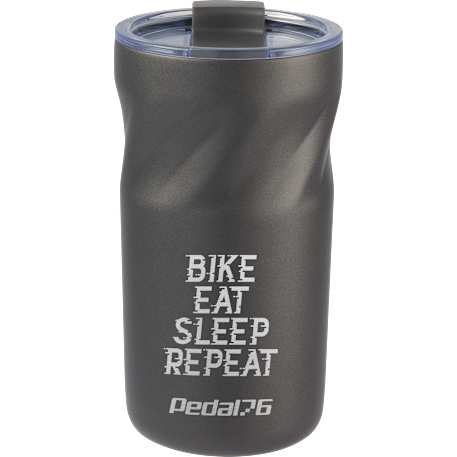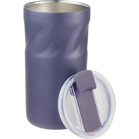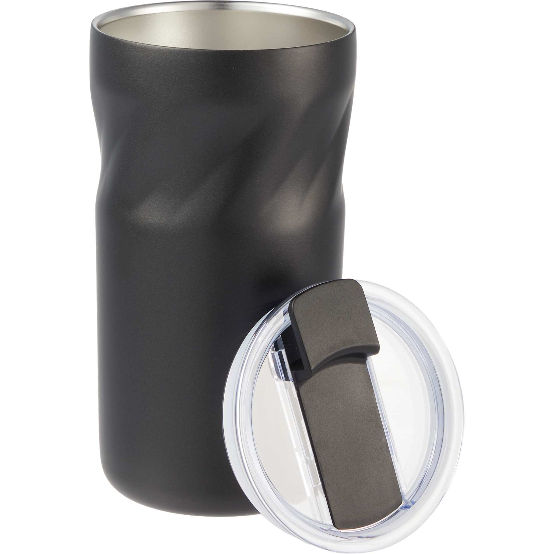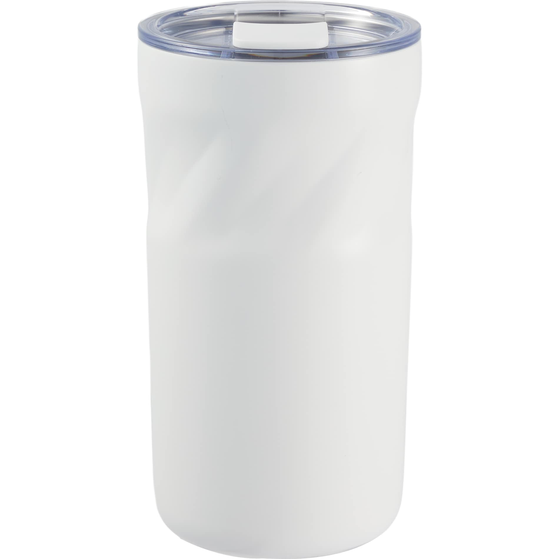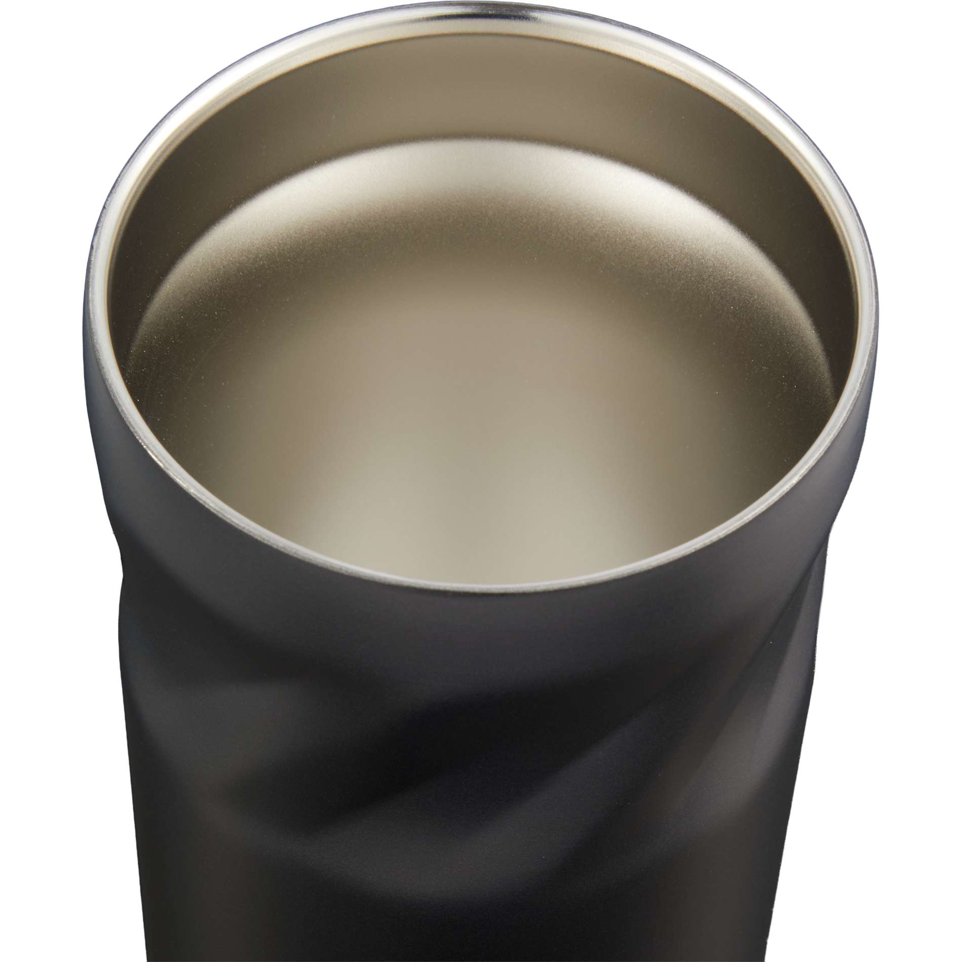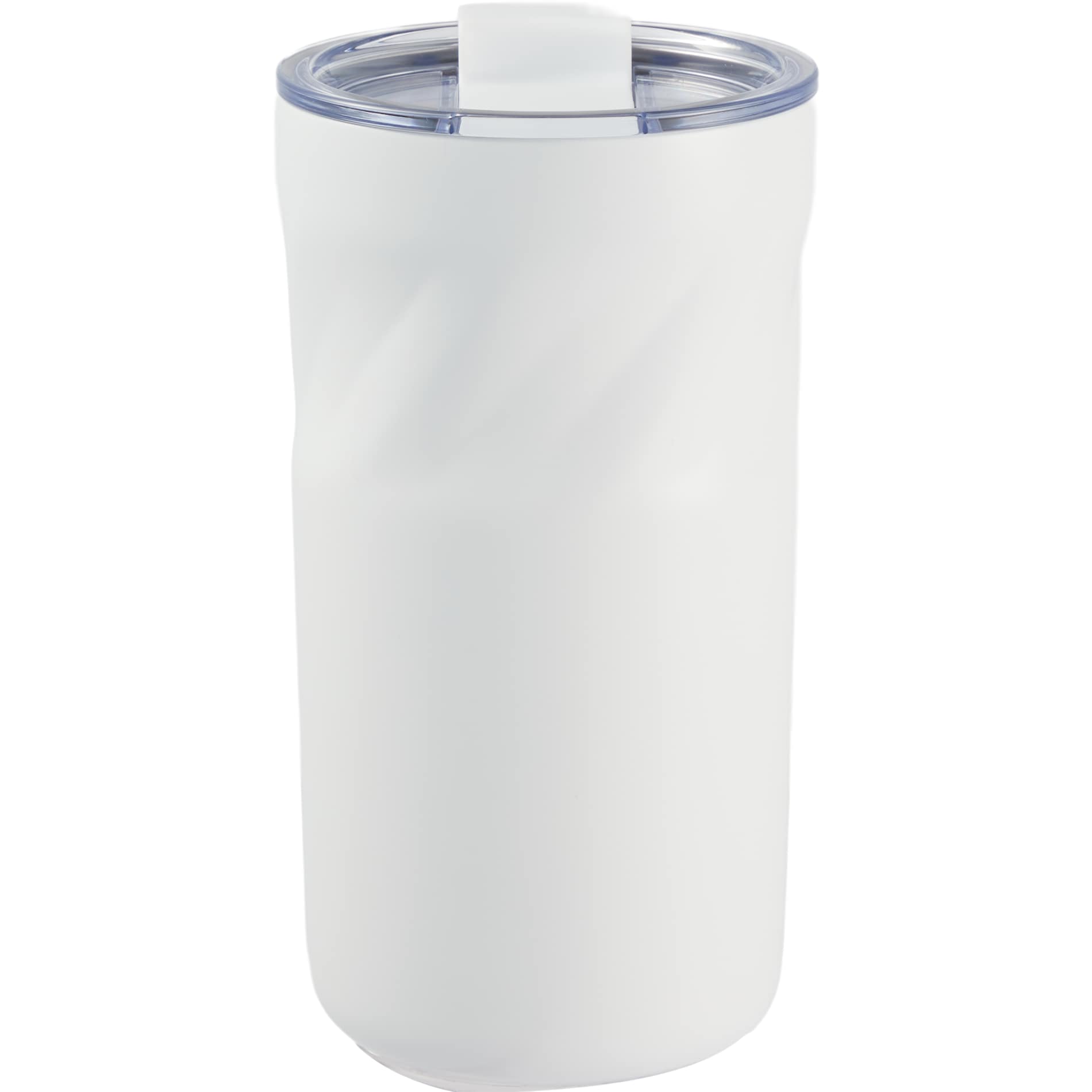The Thalia Vacuum Insulated Tumbler 16oz features double-wall construction designed to keep beverages hot for up to 5 hours or cold for up to 15 hours. With a condensation-resistant exterior, push-on 100% recycled SAN lid with durable 100% polypropylene slider, and easy-to-clean wide opening, this 16oz tumbler is designed for convenience. It features a geometric grip design and is made from 91% post-consumer recycled 18/8 stainless steel liner and standard stainless-steel outer. Hand wash only. 16oz